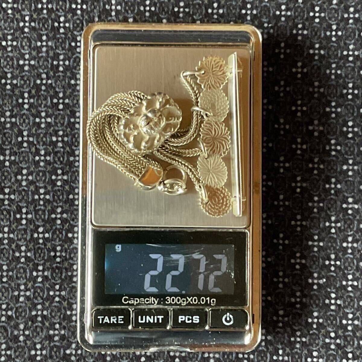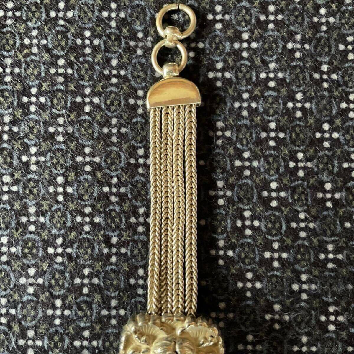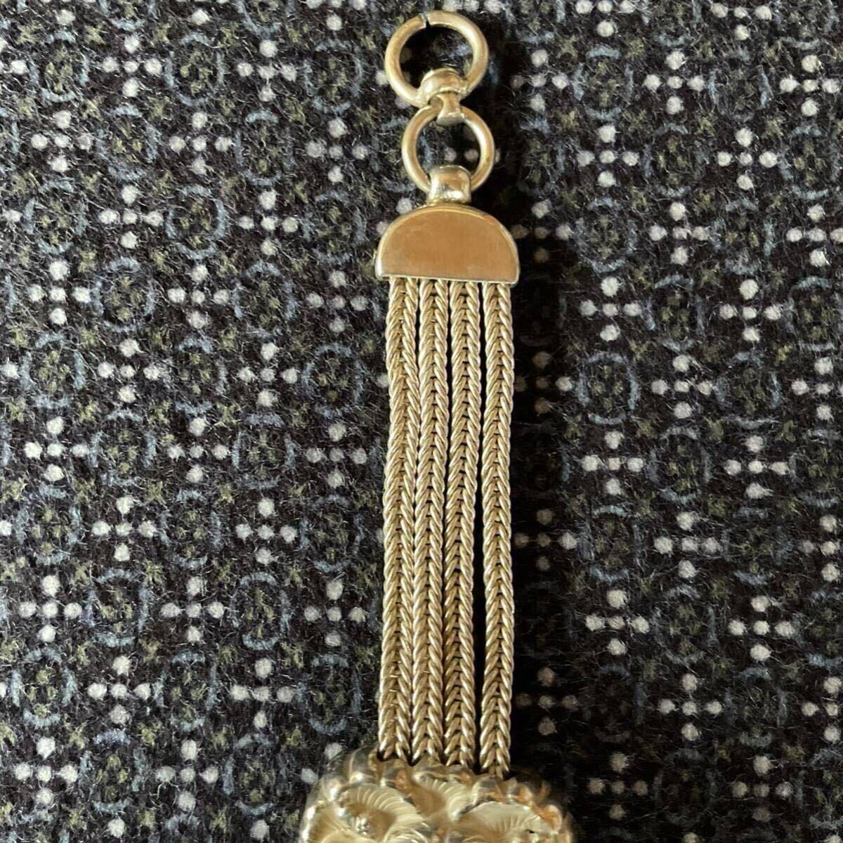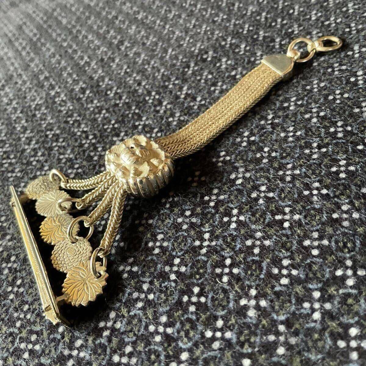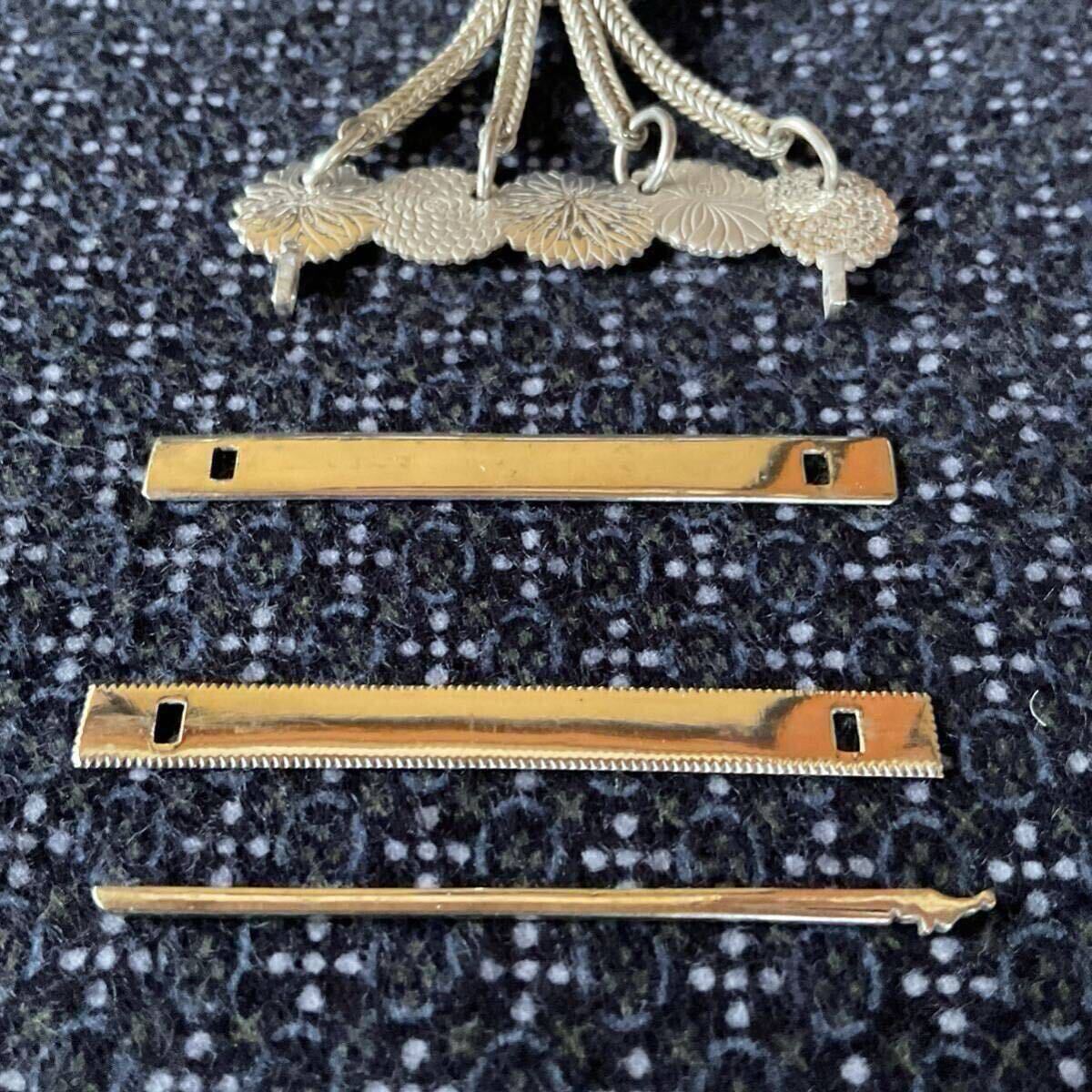 商品名:時代物 蔵出し【華柄彫金細工金具 鍍銀 煙草入れ 提げ物 根付 四連鎖金具 彫刻金具】