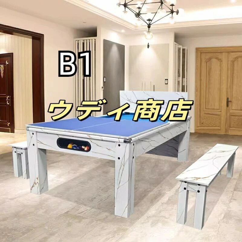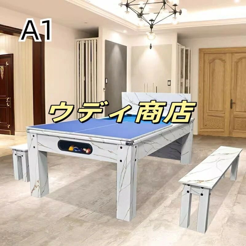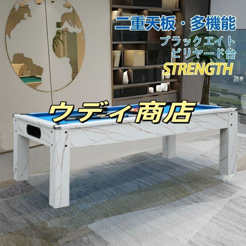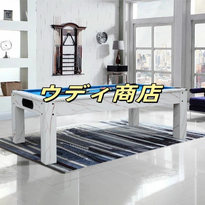 家庭用標準サイズ室内用ビリヤード台 ? アメリカンブラックボール対応商業施設にも適した多機能ビリヤードテーブル。卓球台としても使用できる2in1設計で、家庭でも店舗でも幅広く活躍します。製品特徴多機能デザイン1台3役ビリヤード台、卓球台、ダイニングテーブルとして使用可能。実用性が高く、コストパフォーマンスにも優れています。こだわりのディテール高品質素材高速ビリヤードクロス:毛玉ができにくく、耐摩耗性抜群。スムーズなボールの動きを実現します。高弾性ラバークッション:正確なリバウンドで、より本格的なプレイが可能。防火パネル仕上げ:耐水性耐摩耗性に優れ、長く美しさを保ちます。強化脚部設計:ダブルボルト固定で、安定感抜群。便利な自動ボールリターン機能プレイ後のボール回収がスムーズになり、ゲームに集中できます。モダンで洗練されたデザインイタリアンスタイルの軽ラグジュアリーなデザイン。シンプルでエレガントなフォルムが、空間に洗練された雰囲気をもたらします。選べるサイズ7フィート:2.13×1.22×0.81m8フィート:2.44×1.32×0.81mこの商品は一体型の天板を採用しており、高い安定性と耐久性を誇ります。重量(天板部分)7フィート:約120kg8フィート:約145kg梱包サイズ7フィート:2.25×1.35×0.24m8フィート:2.58×1.48×0.24m頑丈な作りで、長期間にわたって快適にご使用いただけます。家庭でのリラックスした時間や、商業施設での本格的なプレイをサポートする理想的な一台です。ご注文の前に、階段やエレベーターを通過できるかご確認いただくようお願い申し上げます。使用上の注意知らせ:手動測定のため、サイズの若干の誤差はご了承ください。詳細は実際に届いた商品をご確認ください。商品写真はできる限り実物の色に近づけるよう努めておりますがご使用のPCモニター設定や部屋の照明により多少、色の変化が感じられる場合がございます搬入経路(ドア幅、エレベーター、階段)によっては通路が通らない場合もありますので 事前に必ずご確認ください。輸入品のため、ダンボール箱は破れ、へこみ、汚れがございます。ご了承ください。本体に問題はございません。特大サイズの荷物のため、配達日時の指定はできません。ご了承ください。 1F 玄関でのお渡し となります。また配達の際に、大変恐縮ですが、お客様ご自身で荷下ろしのご手配をお願いいたします。体積デカい商品のため、運送中万が一小さい破損が起こる場合、壊れた部品を再発送することが対応可能です。返品返金受けかねます。沖縄、北海道、離島などの住所について送料は別途です。ご理解よろしくお願い申し上げます。