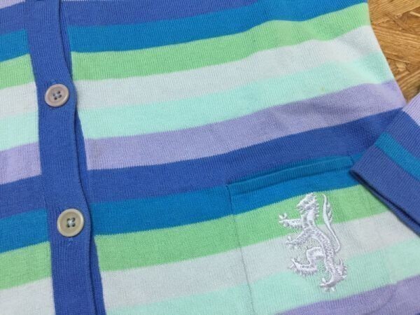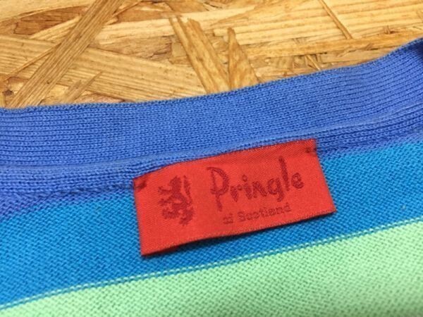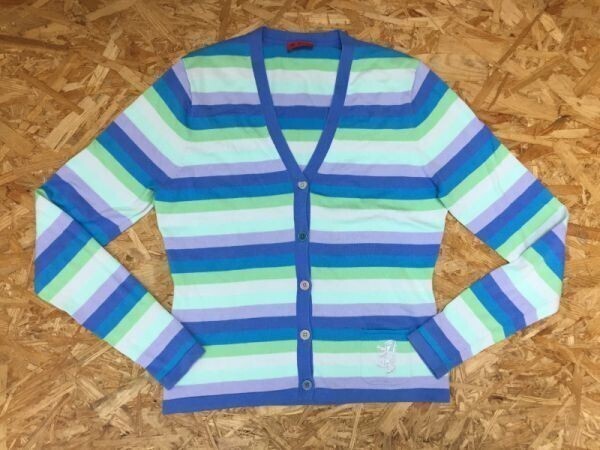 プリングル PRINGLE レトロ パダンボーダー Vネック ハート形ボタン 刺繍 コットンニット カーディガン セーター レディース 綿100% L 青白 です。