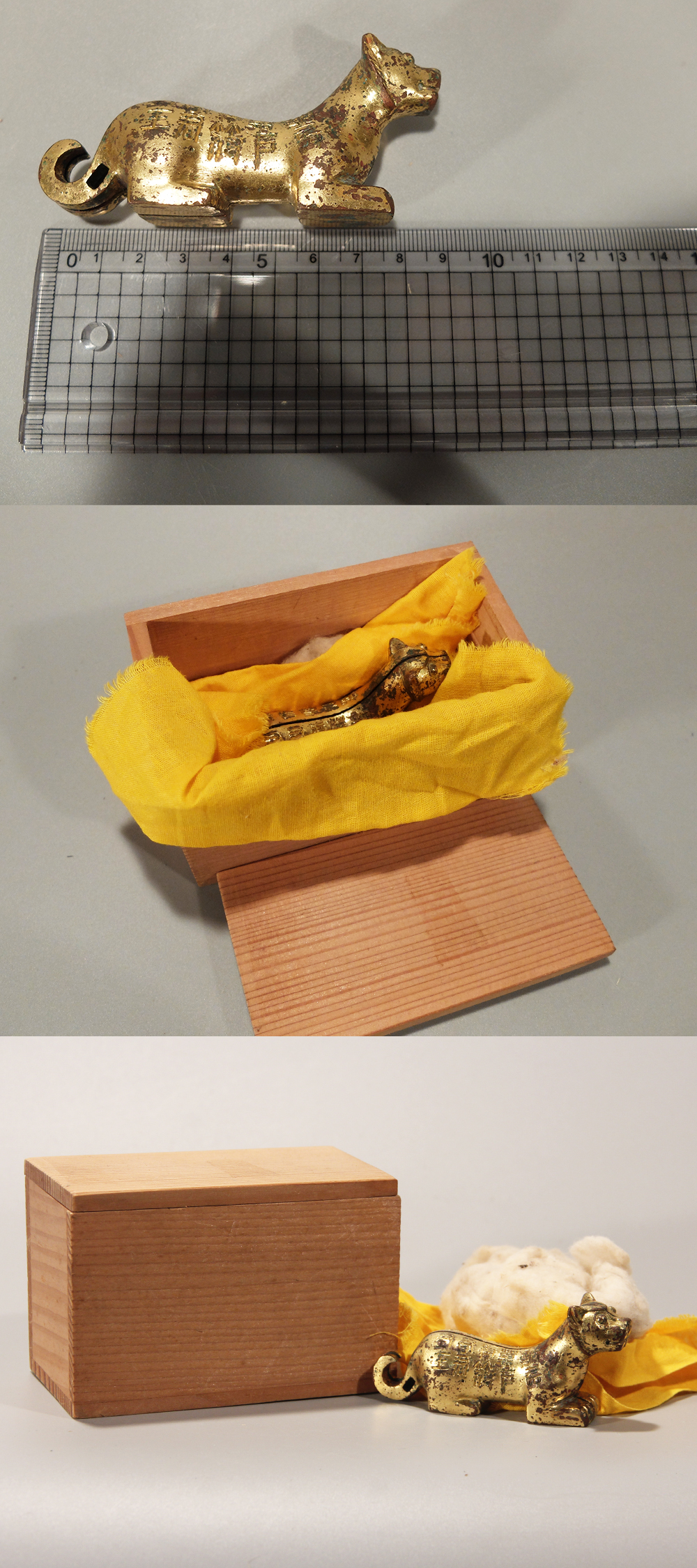| 商品説明 | 銘文入 金銅置物です。 <サイズ> 詳細は写真を参照。 <付属> 木箱、布 |