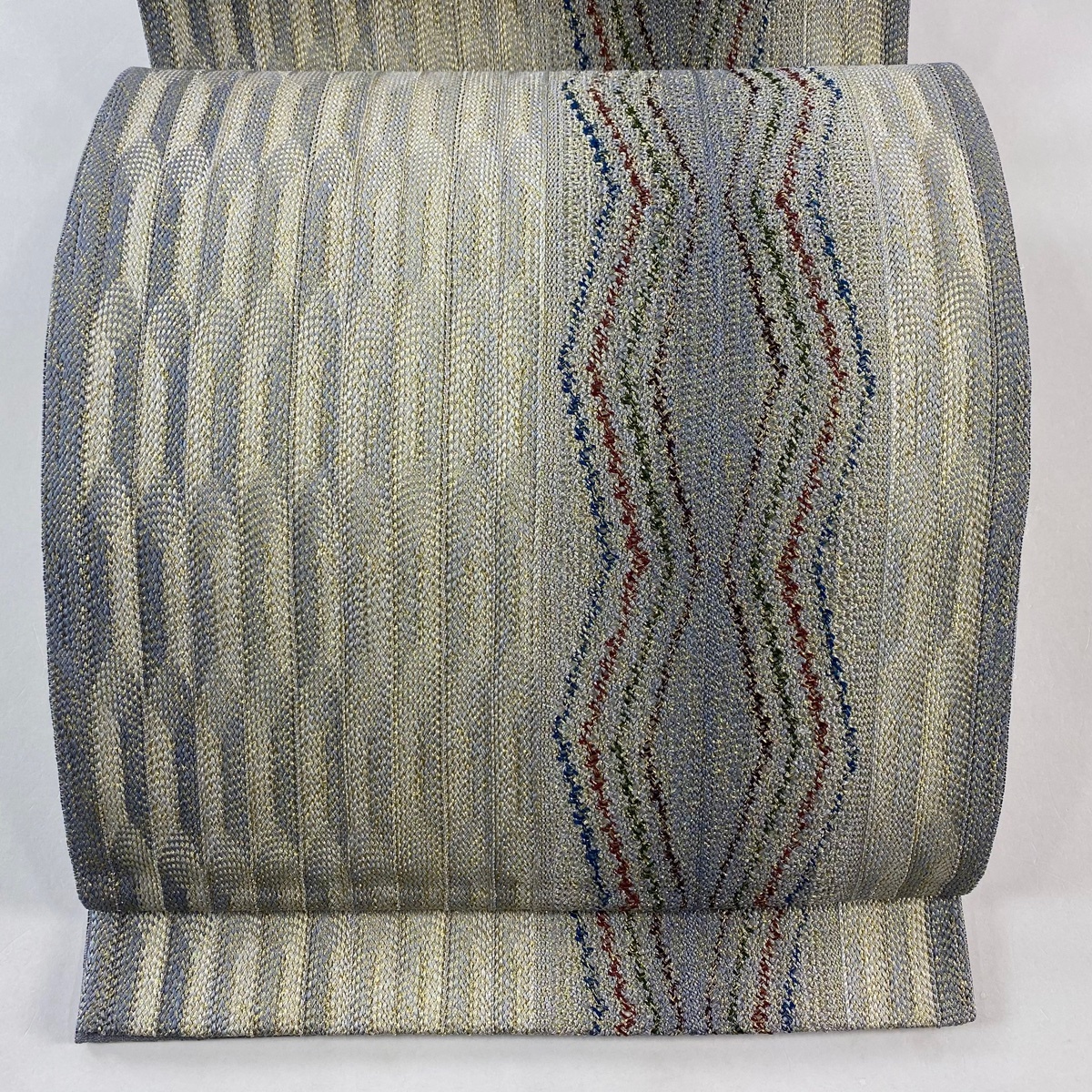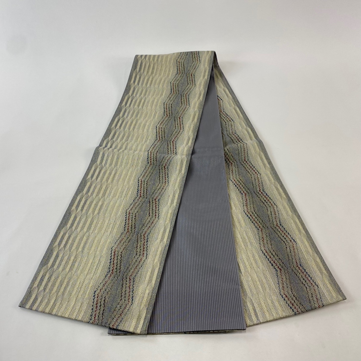 | 袋帯 美品 名品 縞 幾何学模様 金糸 灰色 全通 正絹 【中古】 |