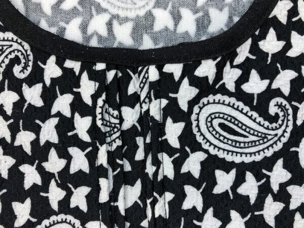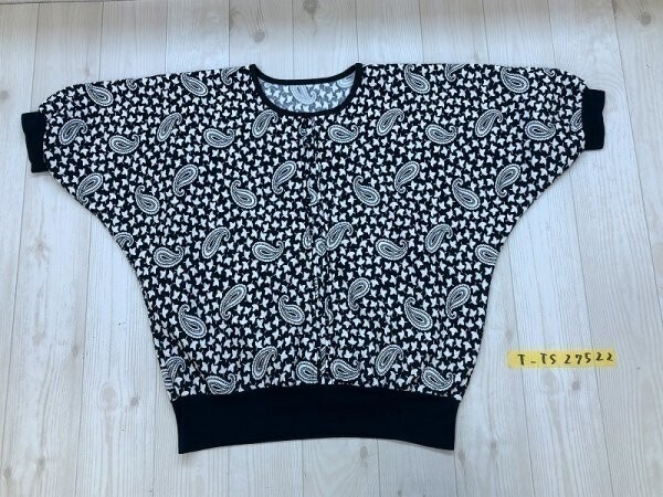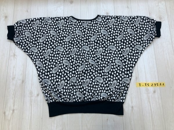 レディース ペイズリー総柄 ピンクタック入 ドルマン プルオーバーカットソー 黒白 です。