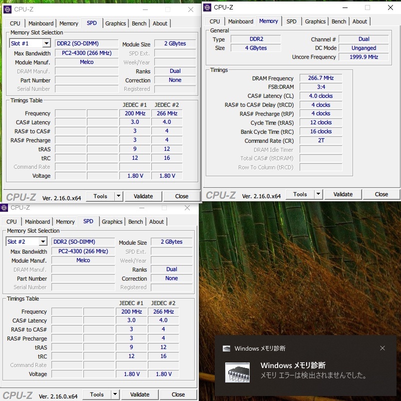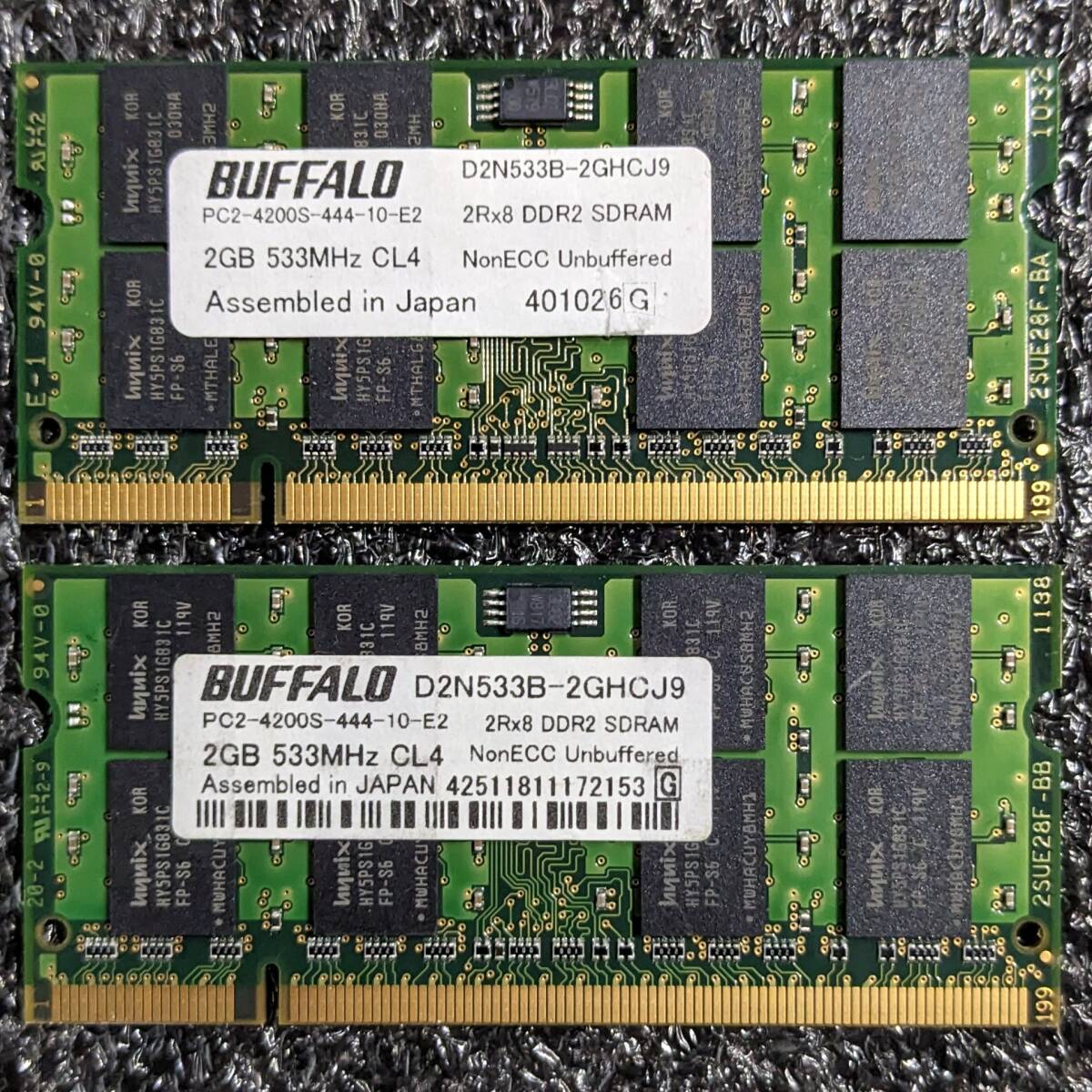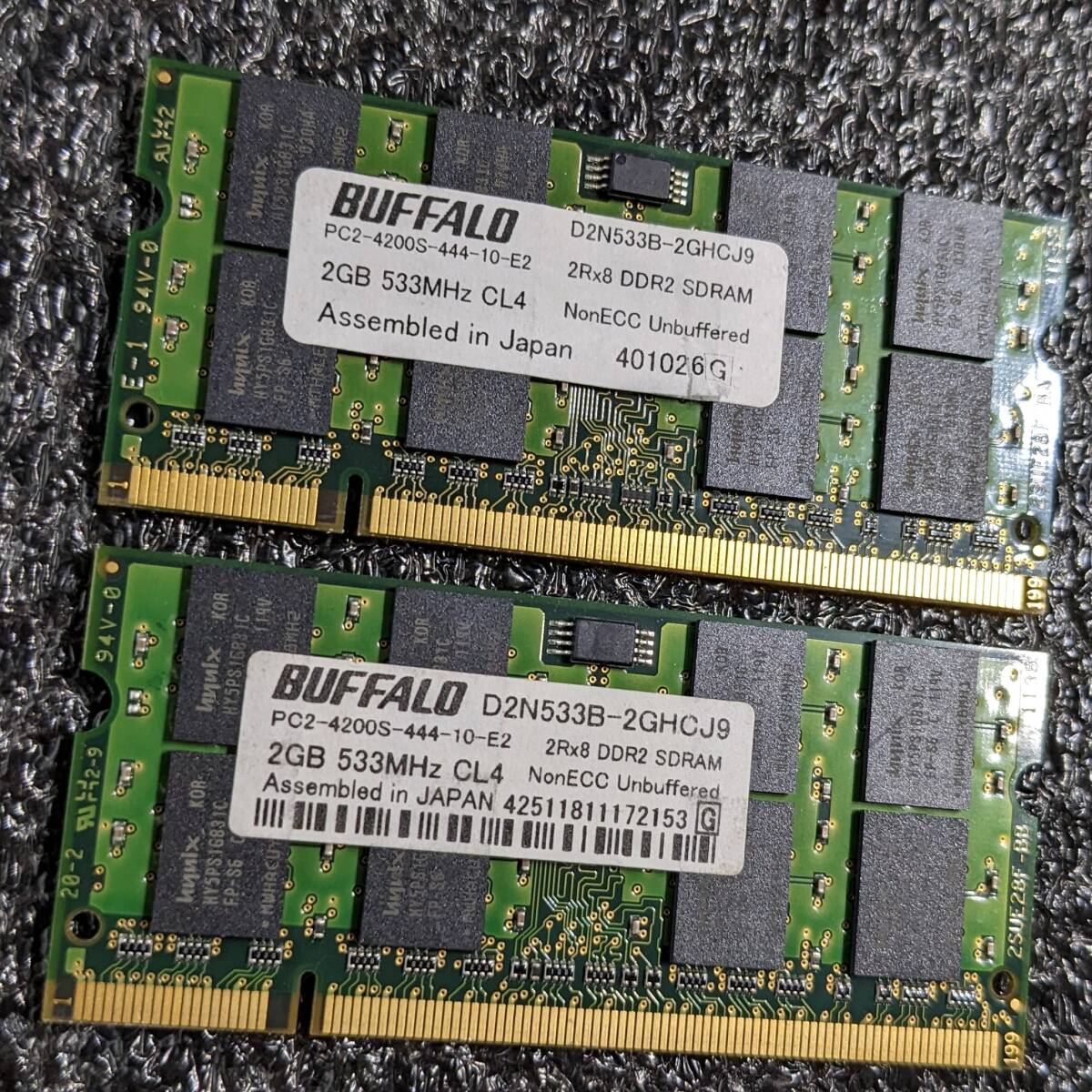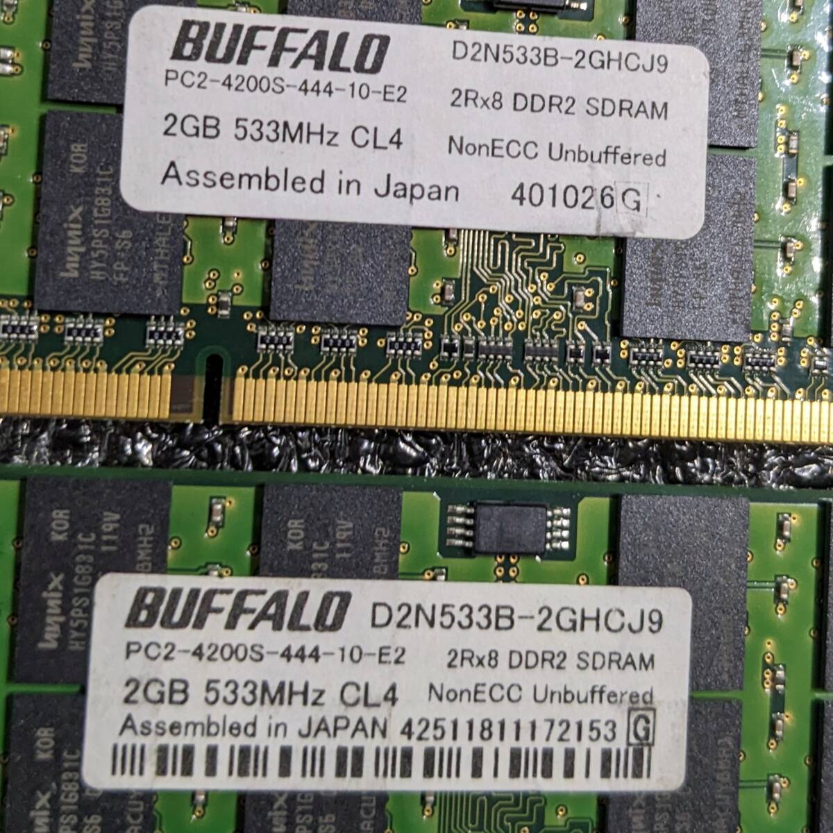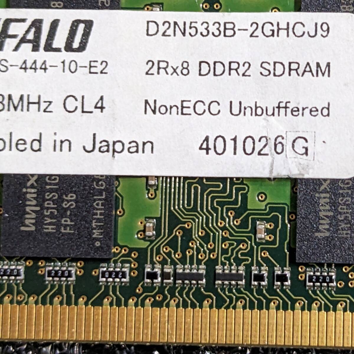 バッファローのDDR2 SODIMM、2GB2枚組合計4GBのセットです。