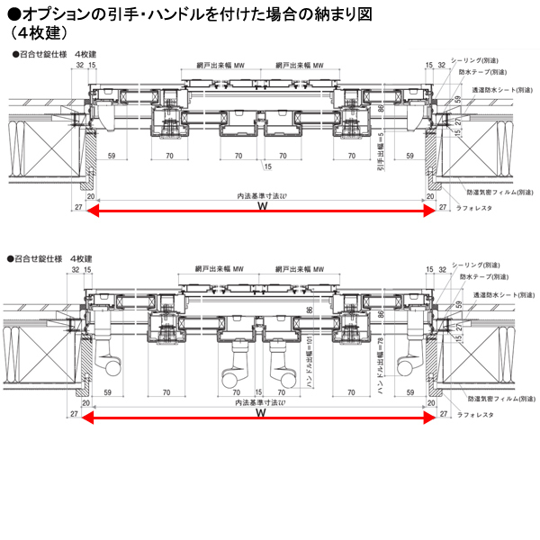 | 商品紹介 | ○ YKKAPのアルミ樹脂複合サッシ エピソードNEO 土間引戸(引違いタイプ/複層ガラス仕様) ○ 別に出品しております、9THよりも高級なシリーズです。 複層ガラス仕様・内側が樹脂のため断熱効果が上がります。 ○ 半外付タイプ・アングル付きの仕様です。 ○ 召し合わせ錠仕様です。外からも施解錠が可能です。(子鍵が3本付属します) * 外観色と内観色をお選び頂けます(※ピュアシルバーのみ内外同色不可です) * 基本は全面ガラス仕様です。 * ガラスを(複層透明)(複層型板・不透明)より選択できます。 * 真ん中に桟を入れる場合は+4.000円(2枚建)又は、+8.000円(4枚建)となります。 中桟付きの場合上段、下段それぞれ(複層透明)(複層型板・不透明)の選択が可能です * オプション・下段に断熱腰パネルを入れる場合は(内外同色又は内部ホワイト +56.000円)(内部木目色 +75.000円)です。 * オプション・サポートハンドルに変更の場合は(+28.000円)、サポート引手に変更の場合は(+8.800円)となります。 ※どちらも室内側に付きます。4枚建の場合サポート引手は2箇所付く事になります。 * オプション・網戸(ブラックネット)もセットでご注文可能です。(+19.700円)2枚組 ※全面ガラスの場合は中桟無し、中桟付サッシの場合は網戸も中桟付きになります。 * 同時に複数セット、お買上げ頂けますと、送料の値引を致します。 違うサイズ(違う種類)との組合せでもOKです、是非お問合せ下さい。 * サッシの仕様、納まり等がわからない時はお気軽に質問にて御相談下さい。 * サッシの取付ってどうしたらいいのでしょうか? 下記のURLをクリック頂きますと、サッシ組立・施工マニュアルページへリンクします。 http://www.hamaya- ls.com/index.html |