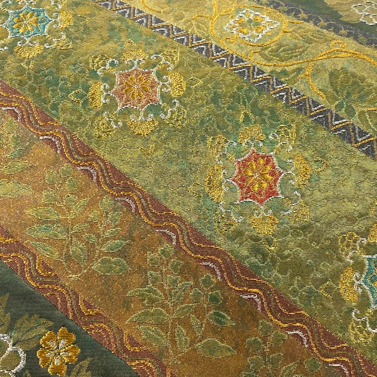 | 袋帯 美品 秀品 華文 花鳥 金銀糸 箔 よもぎ色 六通 正絹 【中古】 |
