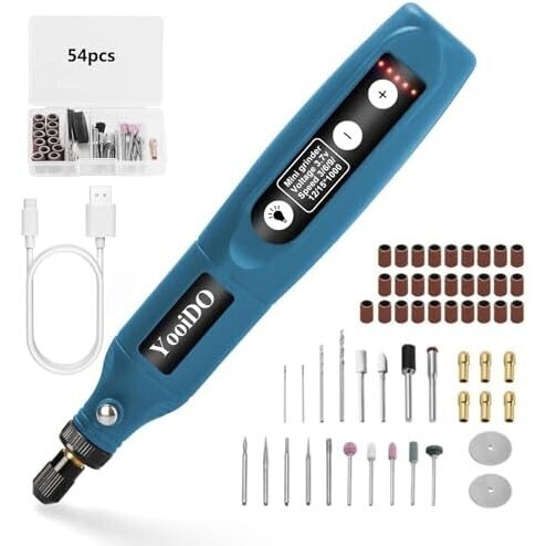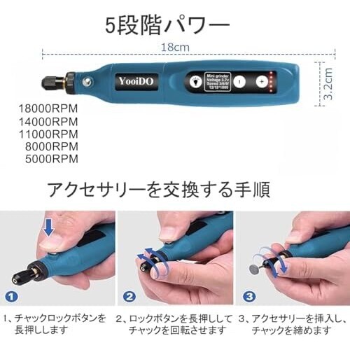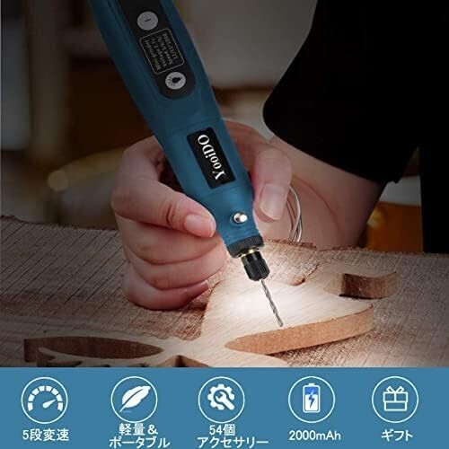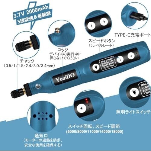 ネイビー ミニルーター リューター コンパクトルーター 5段変速 54PCSセットYooiDOルーター工具 2000mAhリューター 電動 18000RPM AF169
