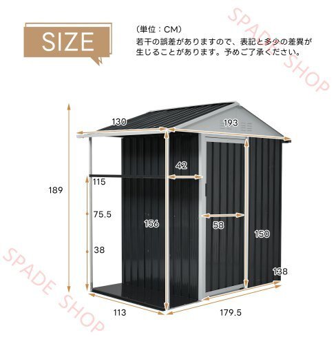 • ◎03【大容量でしっかり収納】約2433Lとたっぷり収納でき、ガーデニングの道具入れなど使い方は様々です。5×4FT 138*113*156cm 約2433Lの大容量