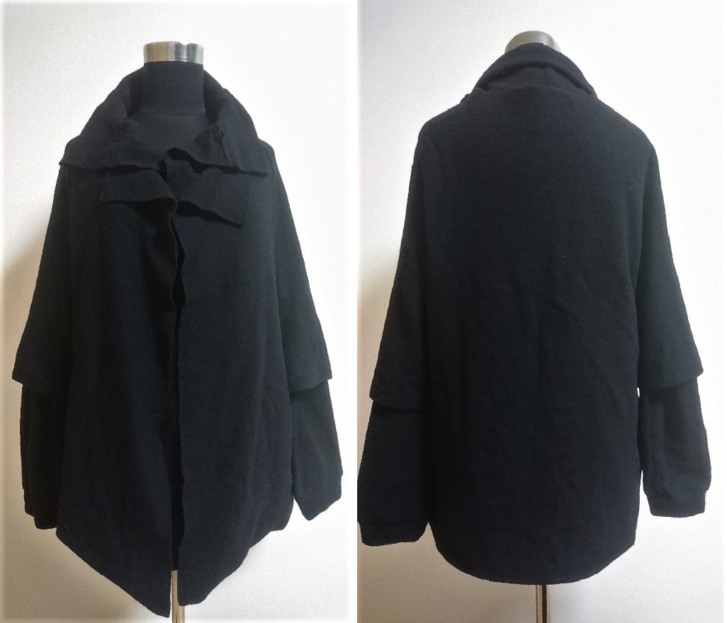 ご覧頂きありがとうございます。ワイズの二重コート(委託品)になります。裾部分がつながっていて折り返して二重になるワイズの人気商品です。色は黒、素材はウール88%ナイロン12%、サイズは2、肩幅はラグランの為計測不可、身幅50cm、袖丈(脇下計測)41cm、丈72cm位です。素人採寸との事をご了承下さい。美品かと思いますがユーズドとの事をご理解頂ける方のみご入札願います。ノークレーム・ノーリターンでお願い致します。発送はヤマト運輸でお願い致します。ご連絡は2日以内、お支払いは3日以内でお願い致します。なお出品商品と無関係なご質問、画像転用、値引き交渉はご遠慮下さい。