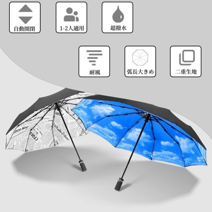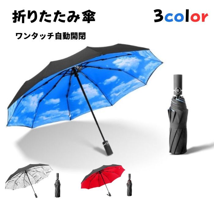 折りたたみ傘 青空 自動開閉 ワンタッチ 全自動 折り畳み式 傘 軽量 UVカット 高撥水 耐風 晴雨兼用 大きめ 丈夫 収納袋 メンズ