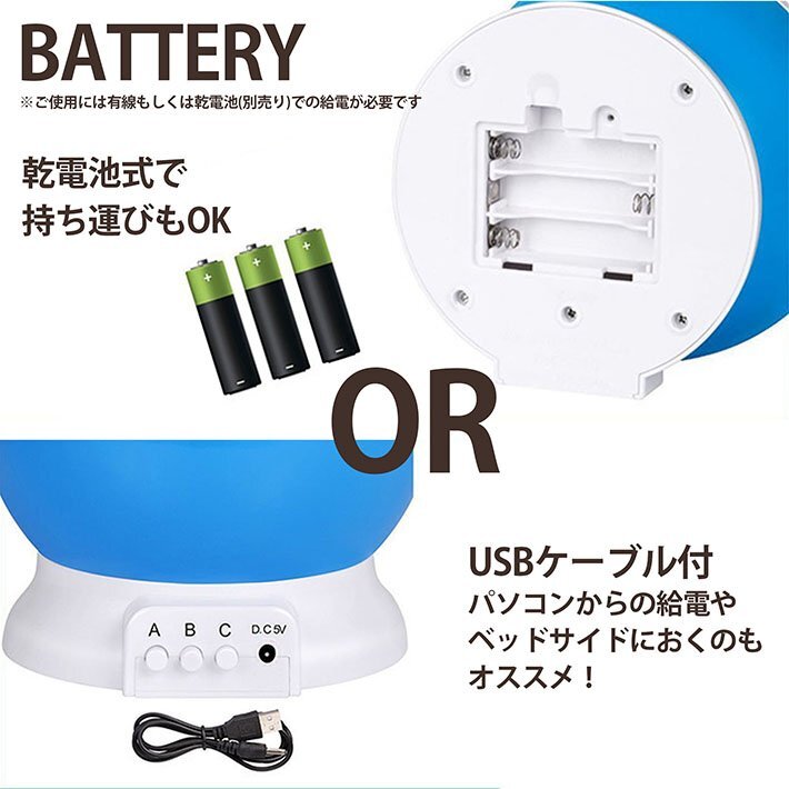 乾電池式で持ち運びOK、USBケーブル付でパソコンやコンセントからの給電も可能!