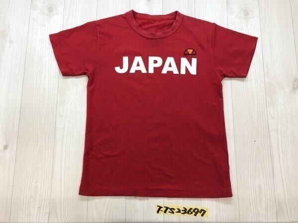 ellesse エレッセ レディース 半袖Tシャツ/赤 JAPANプリント ロゴワッペン 鹿の子素材