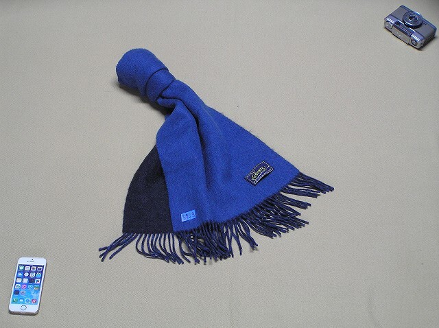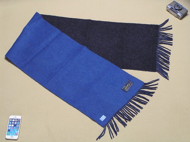 | 極上カシミヤ100% リバーシブル仕様マフラー ストール あわせやすい定番の紺ネイビー系 上質な柔らかさ 美品 長さ144㎝×幅32㎝ ■5903 | |