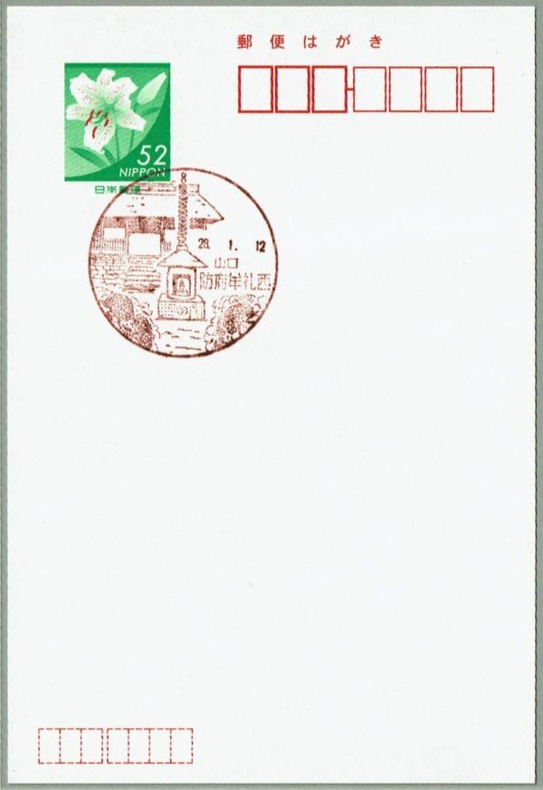 2016(平成28)年1月12日から使用開始された、風景印を官製はがきに使用開始の初日に押印。