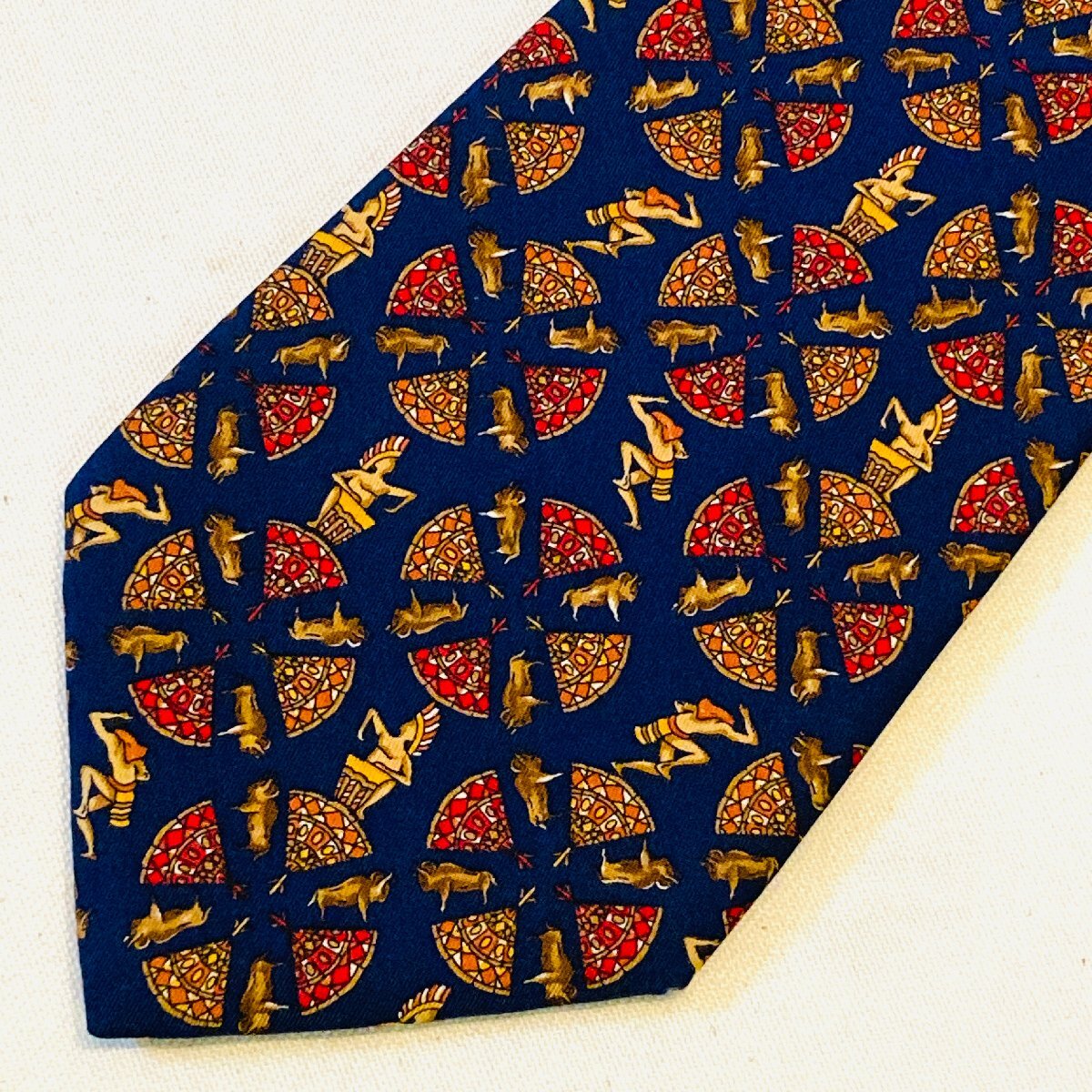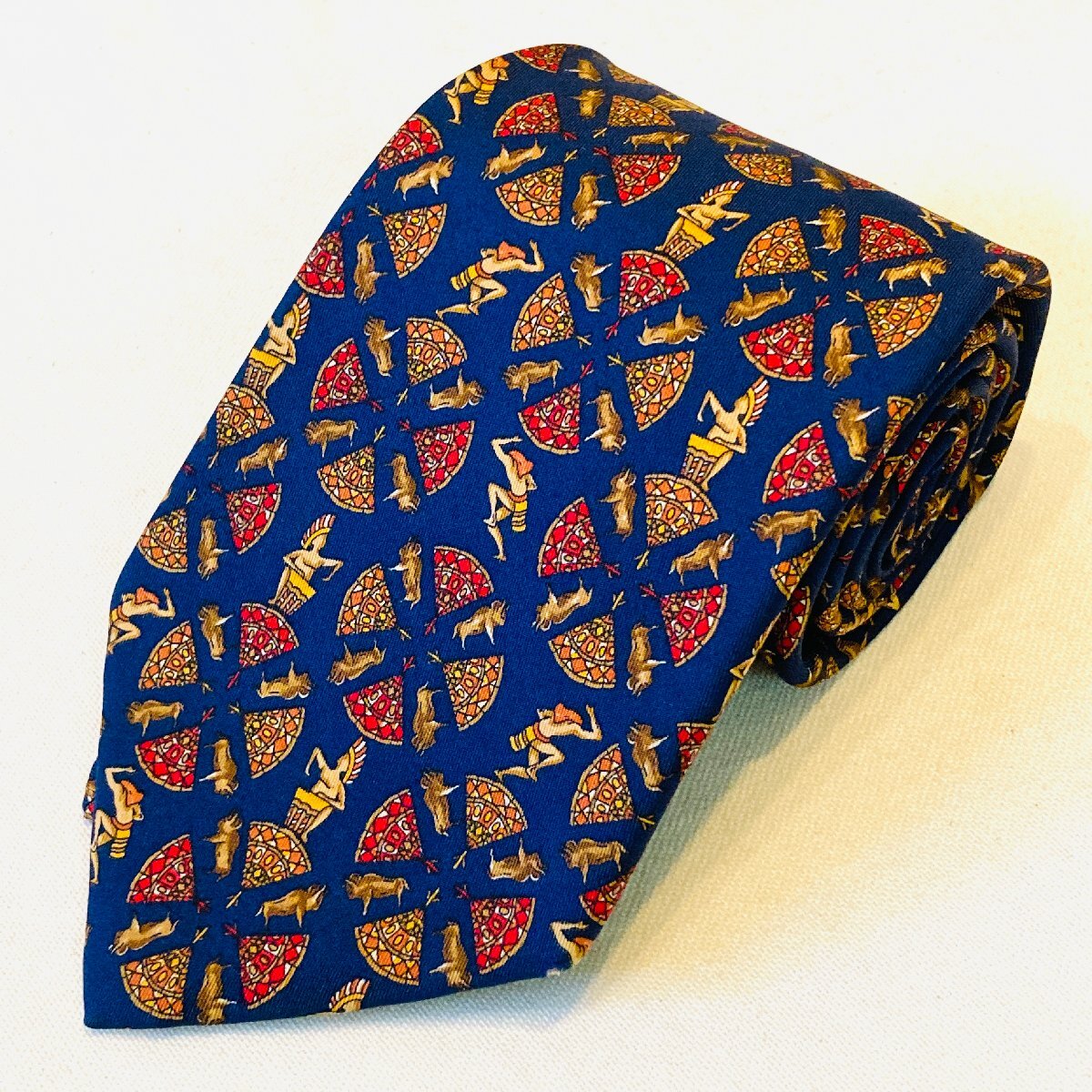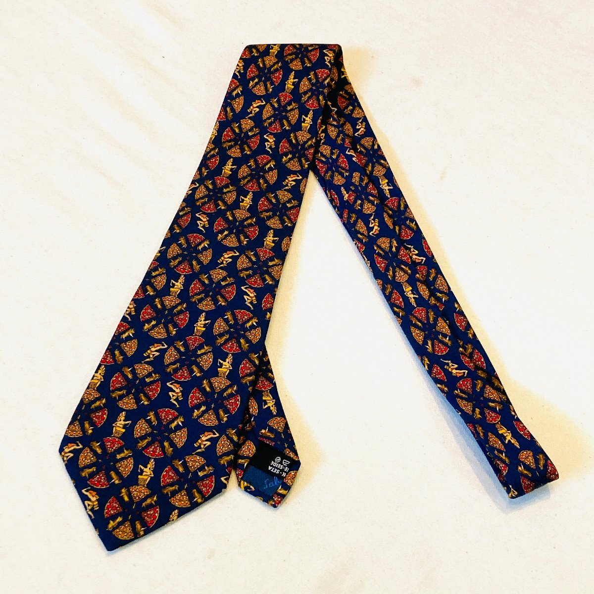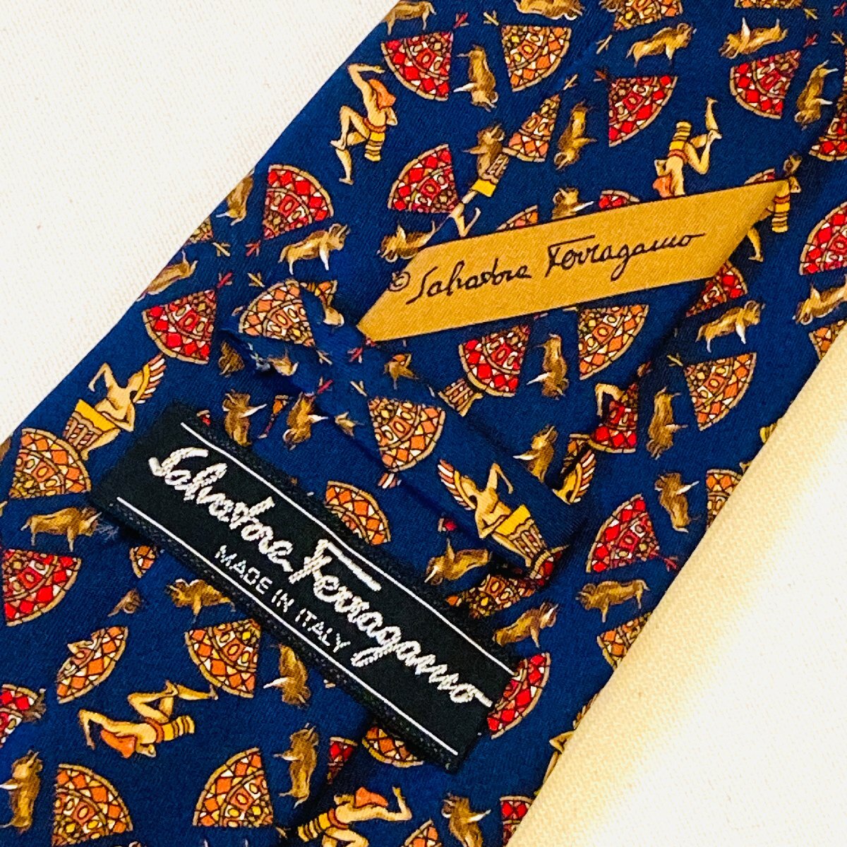 Salvatore Ferragamo サルヴァトーレフェラガモ イタリア製 絹 シルク SILK 100% 高級 ネクタイ ネイビー系 総柄 アニマル柄 民族