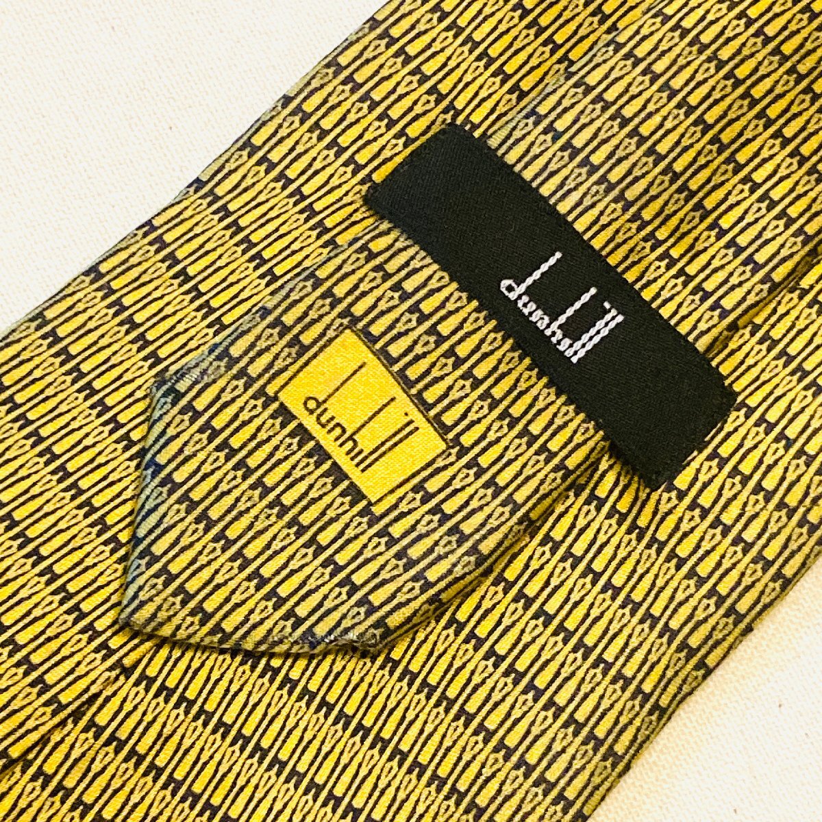 dunhill ダンヒル イタリア製 絹 シルク SILK 100% 高級 ネクタイ ゴールド/ブラック系 総柄