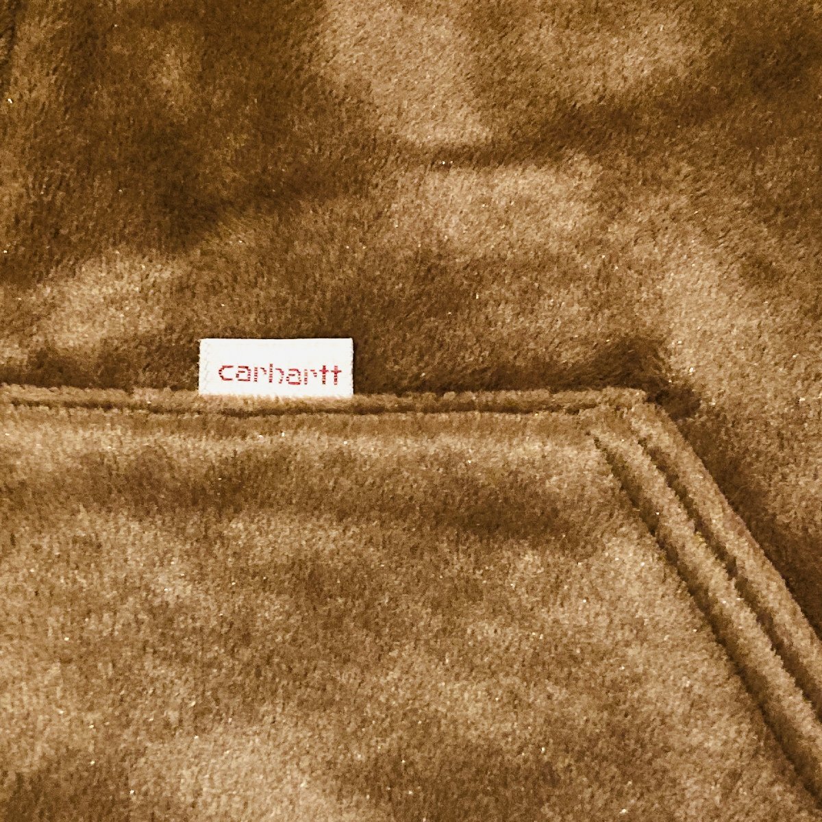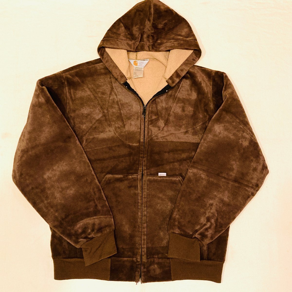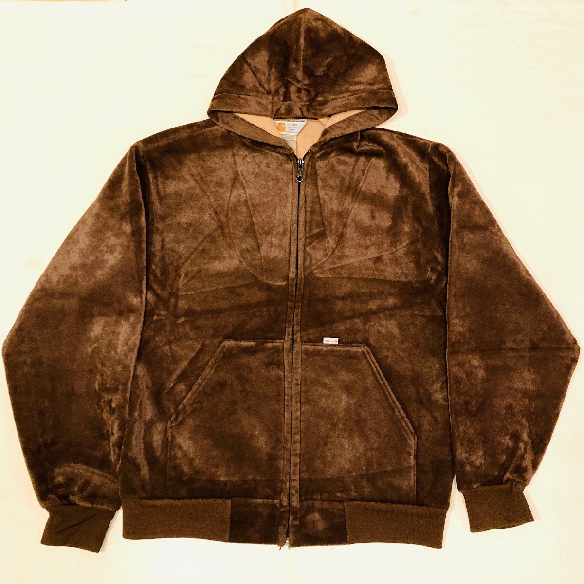 Carhartt カーハート アメリカ製 刺繍 タグ ベロア ジップアップ パーカー フーディー ブラウン Large WPL13224