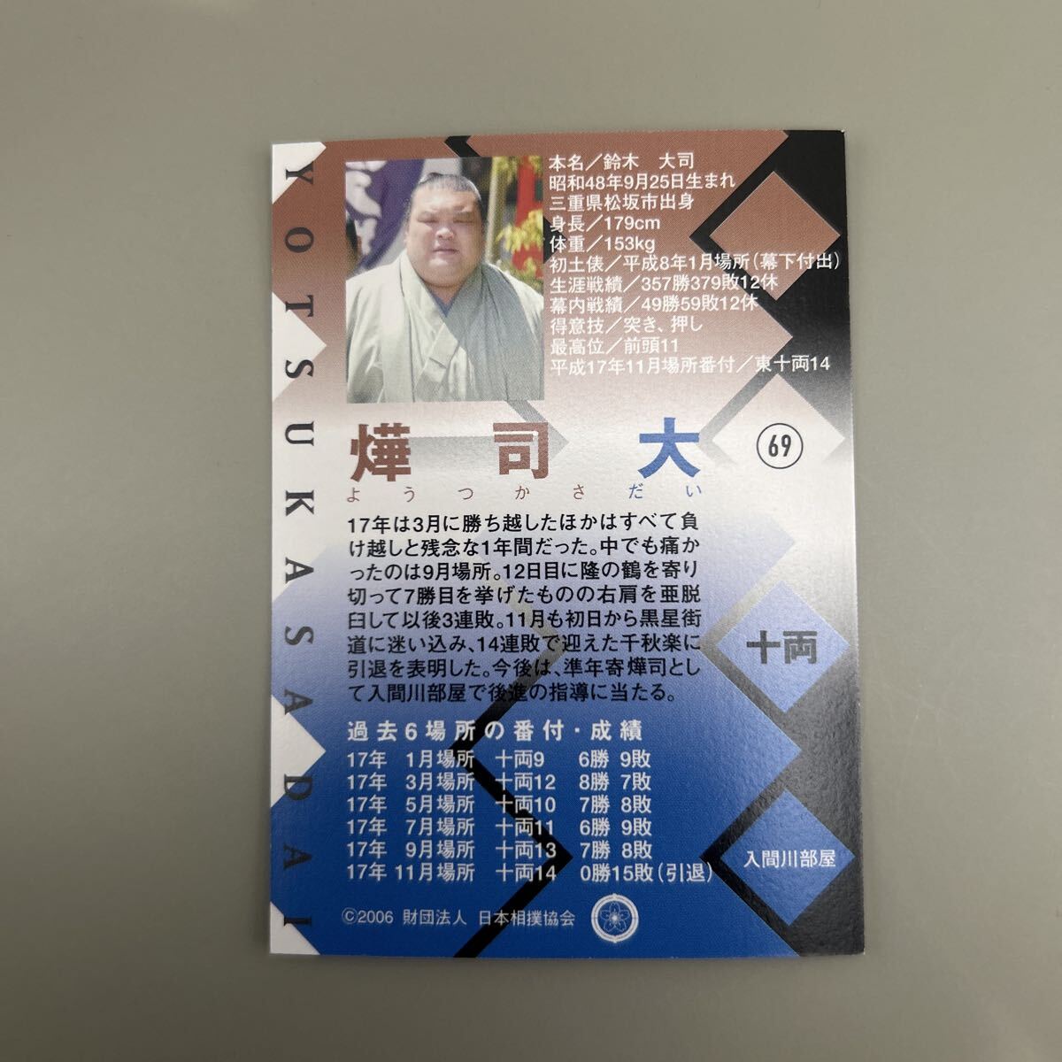 BBM 大相撲カード 相撲 レギュラー 相撲 カード トレカ 2006 69