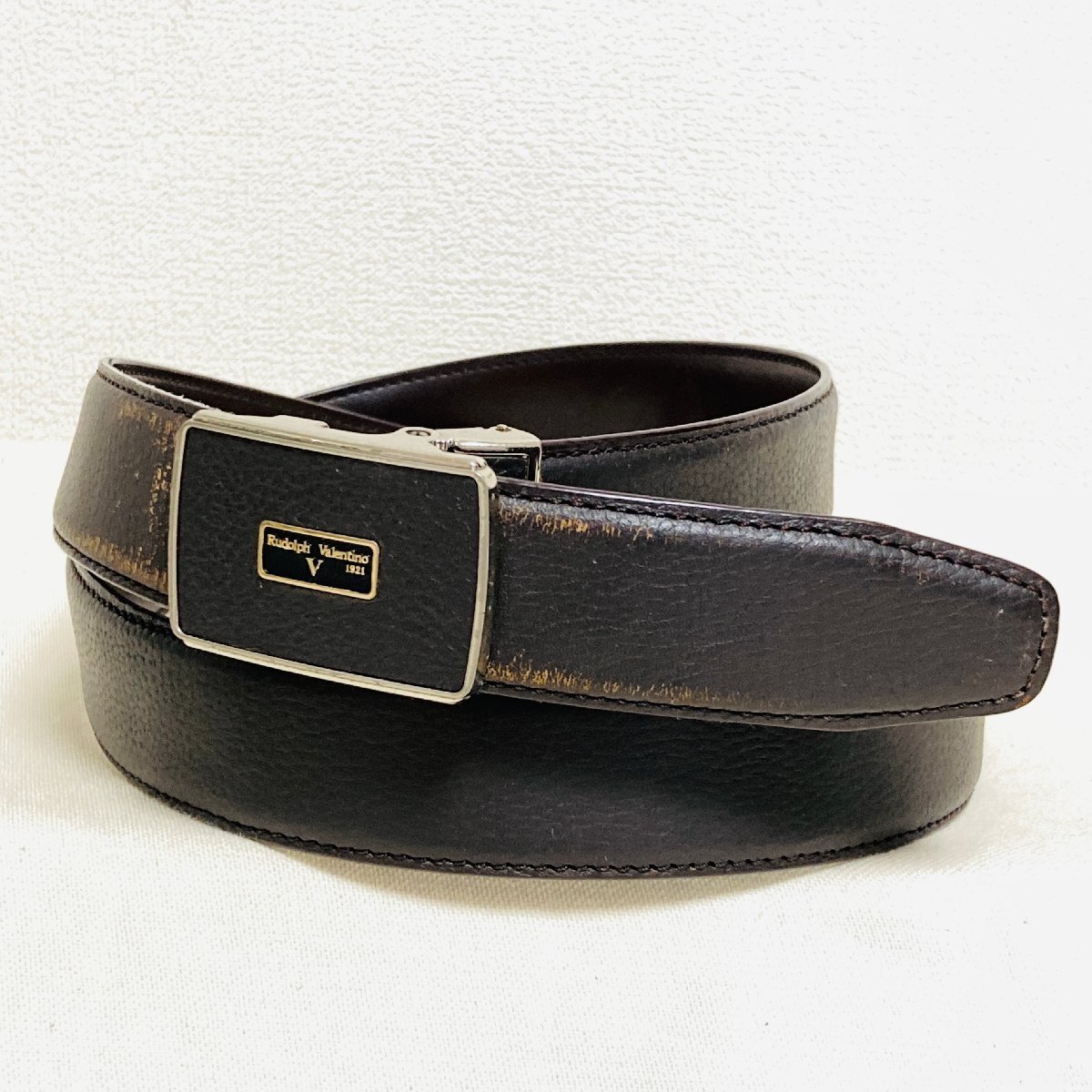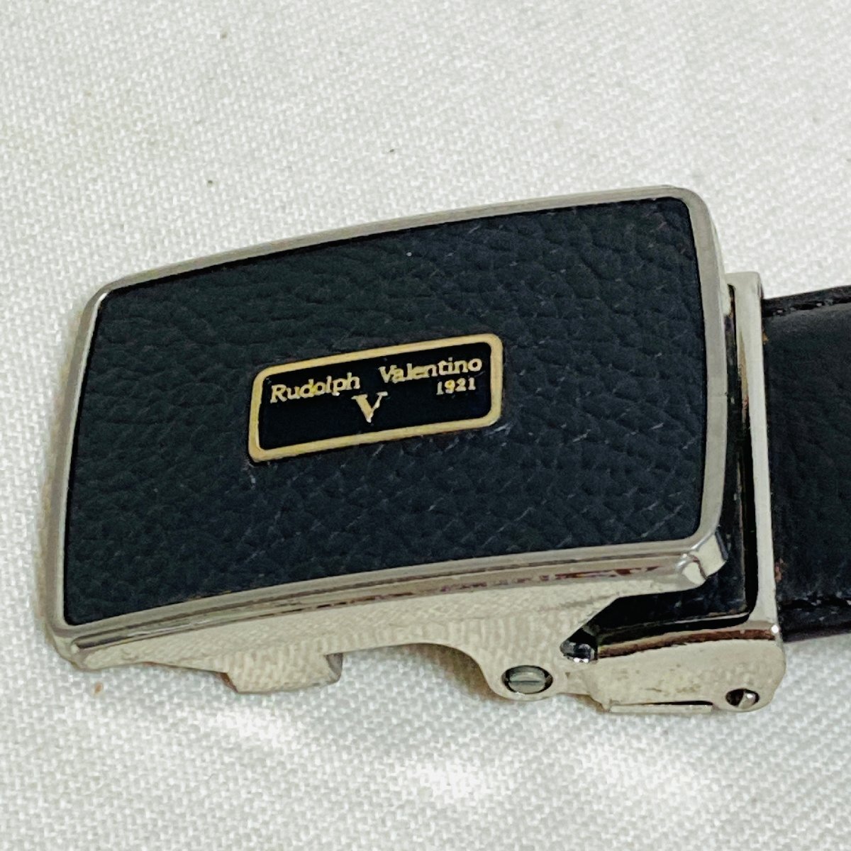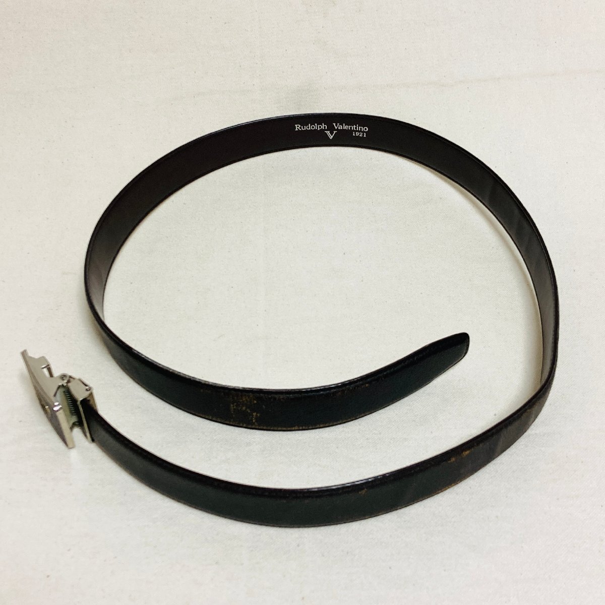 Rudolph Valentino ロゴ デザイン バックル LEATHER/本革 レザー ベルト ブラウン/焦げ茶系 穴なし フリーサイズ