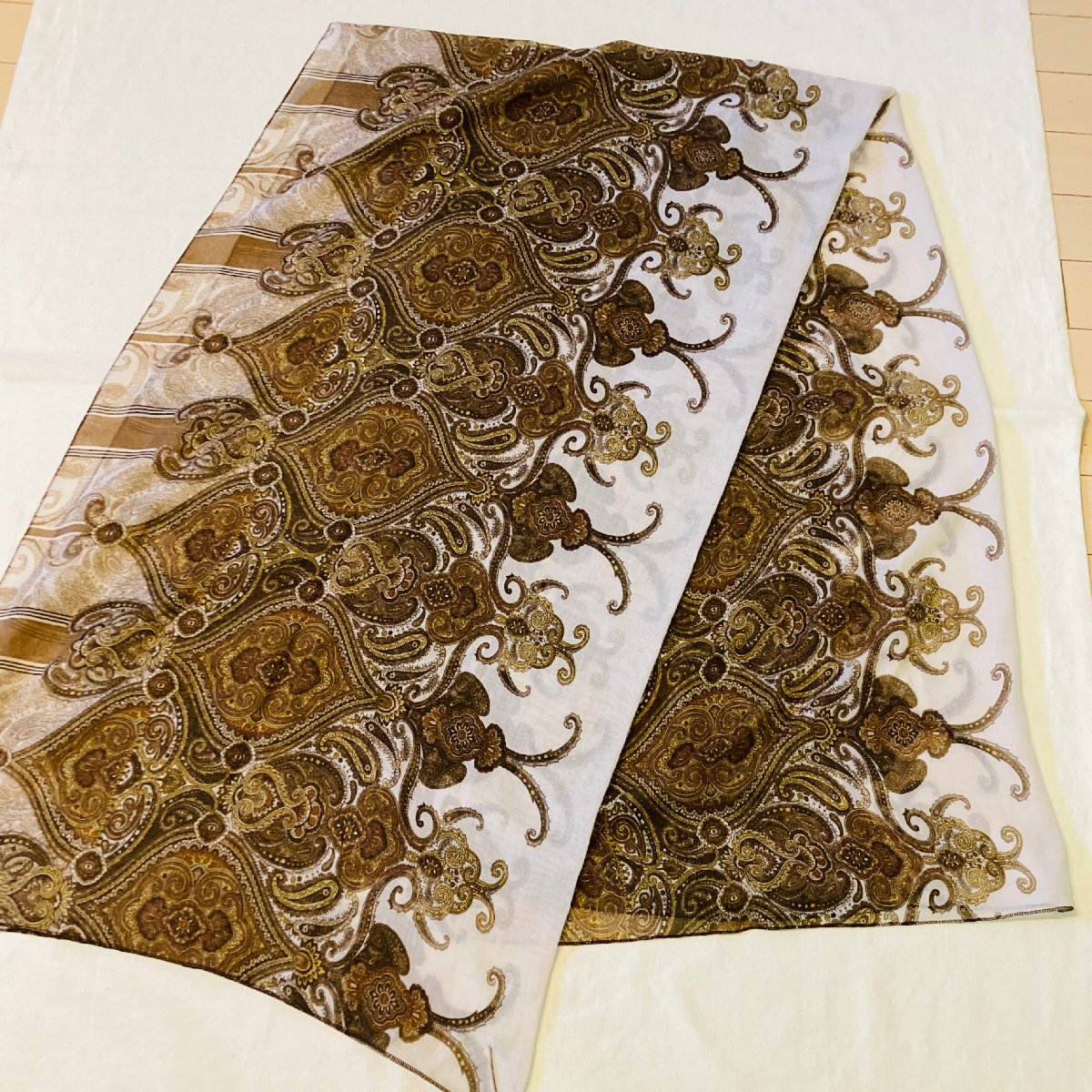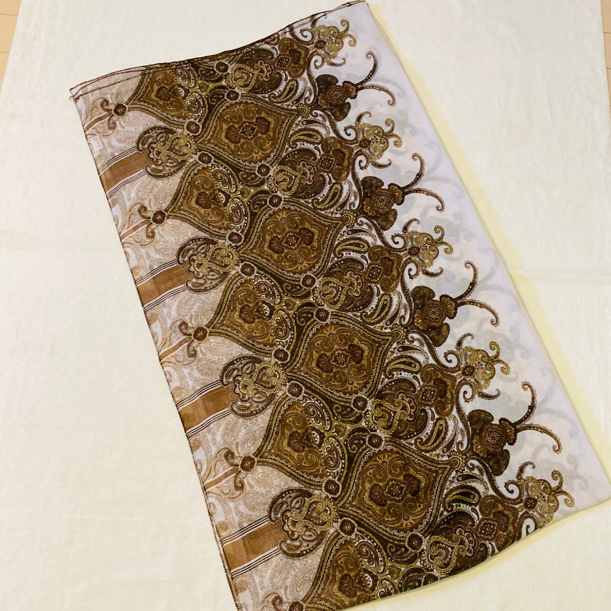 レディース ロング スカーフ バッグスカーフ ブラウン系 ペイズリー柄