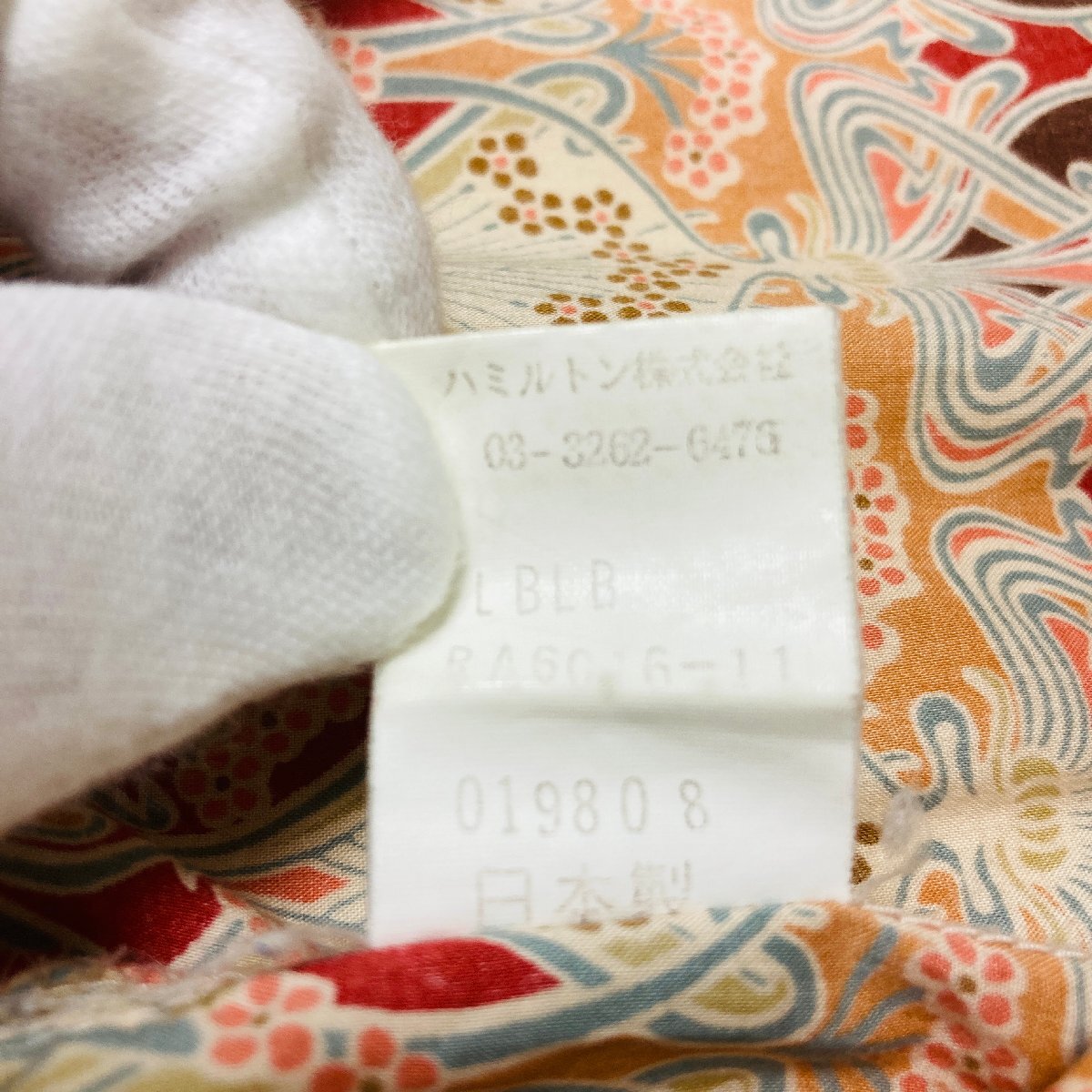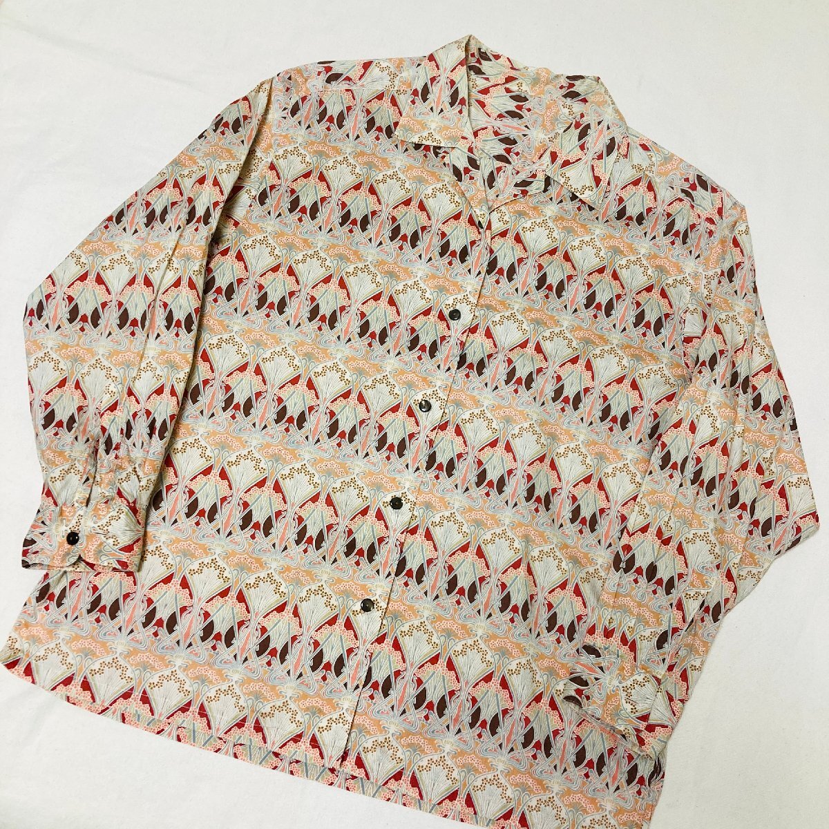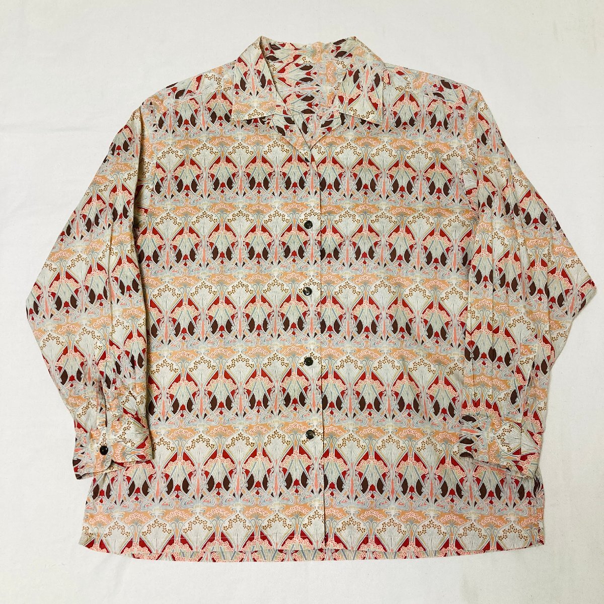 日本製 総柄 ロングスリーブ シャツ オレンジ系 ハミルトン製