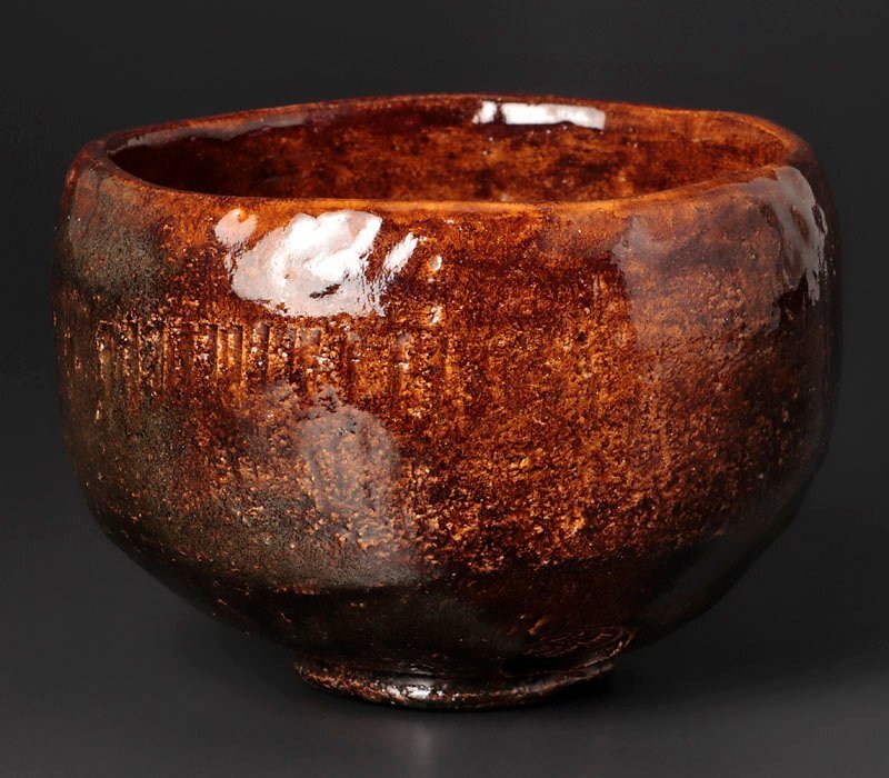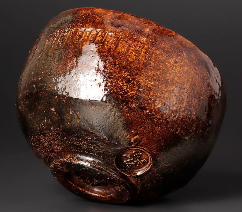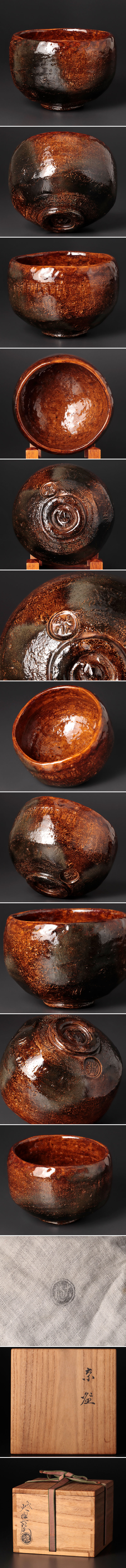 飴釉の生む複雑で豊かな景色が美しくあたたかみのあるお茶碗です。 ★商品は九代大樋長左衛門の作品である事を保証致します。 |