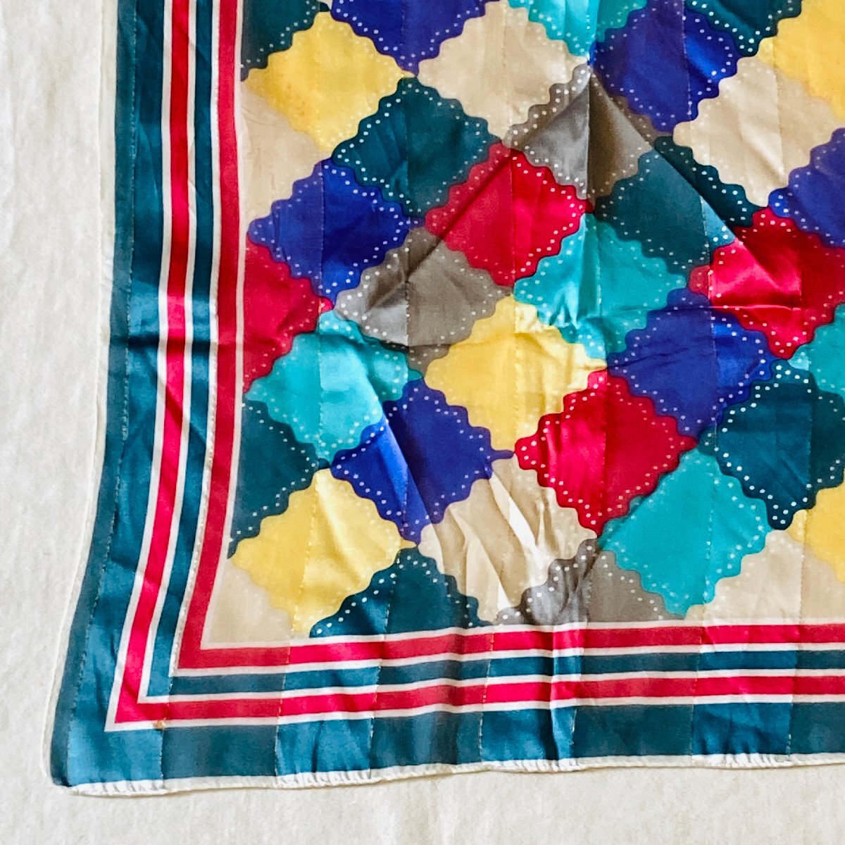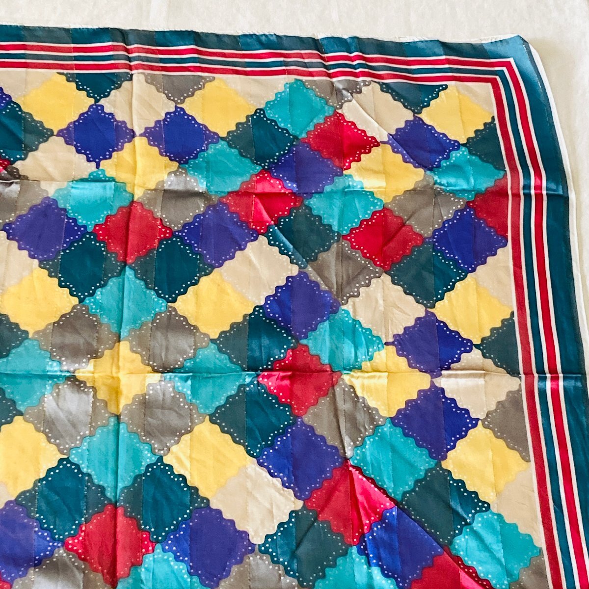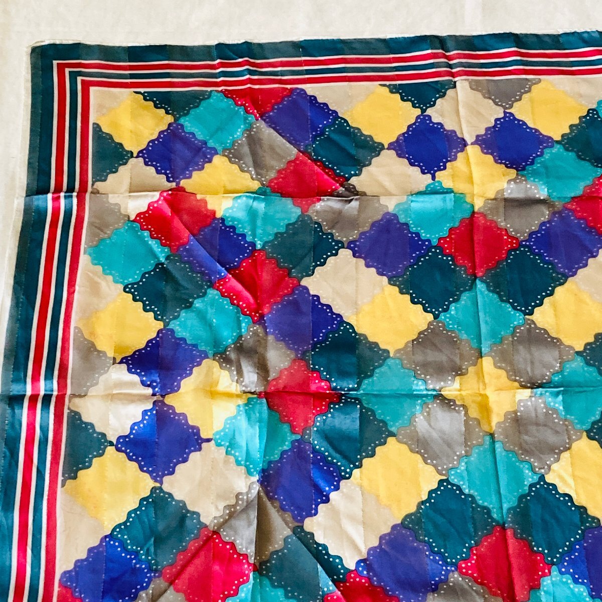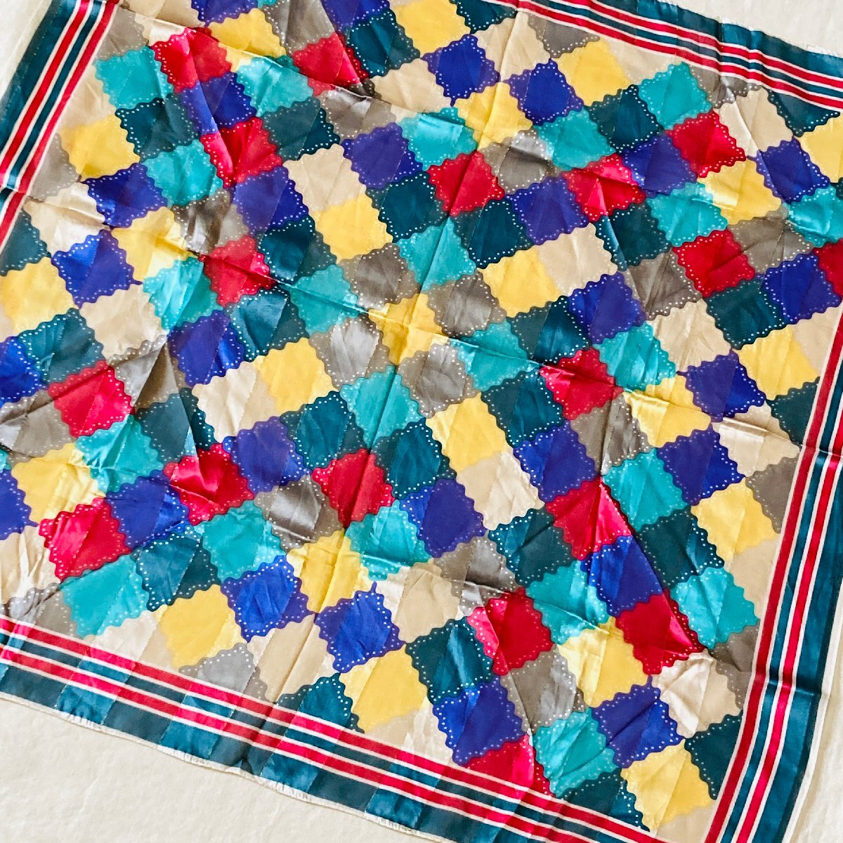絹 シルク/SILK 100% 金糸 レディース 大判 スカーフ グリーン系 アート柄【国産品】