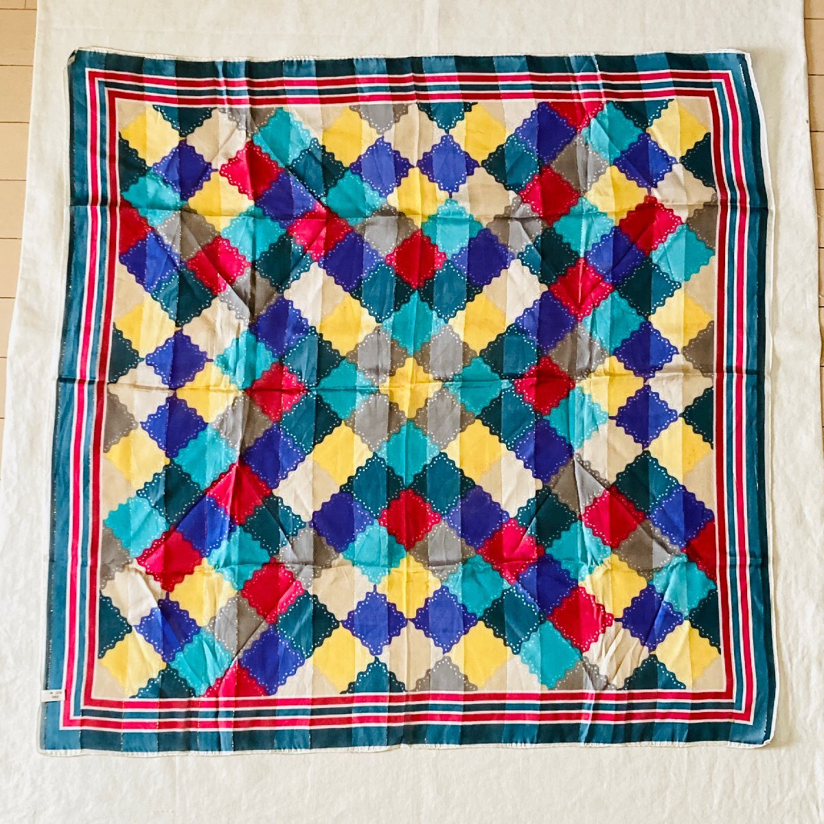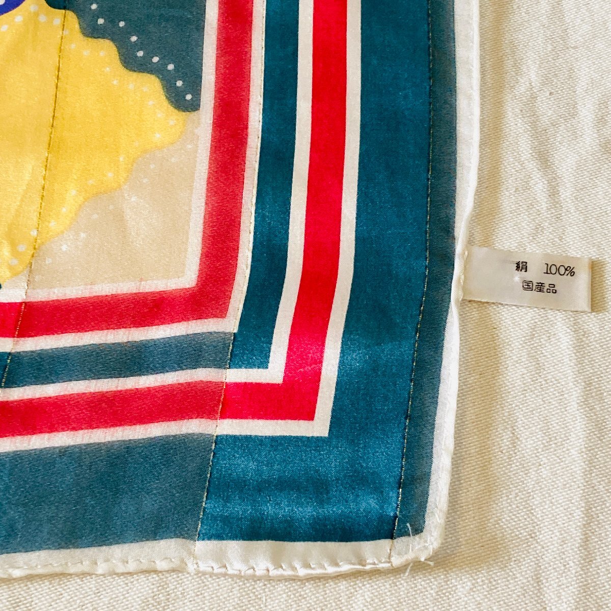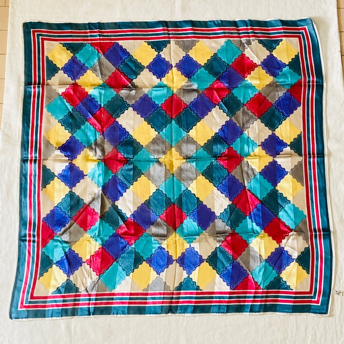 国産品 絹 シルク/SILK 100% 金糸 レディース 大判 スカーフ グリーン系 アート柄