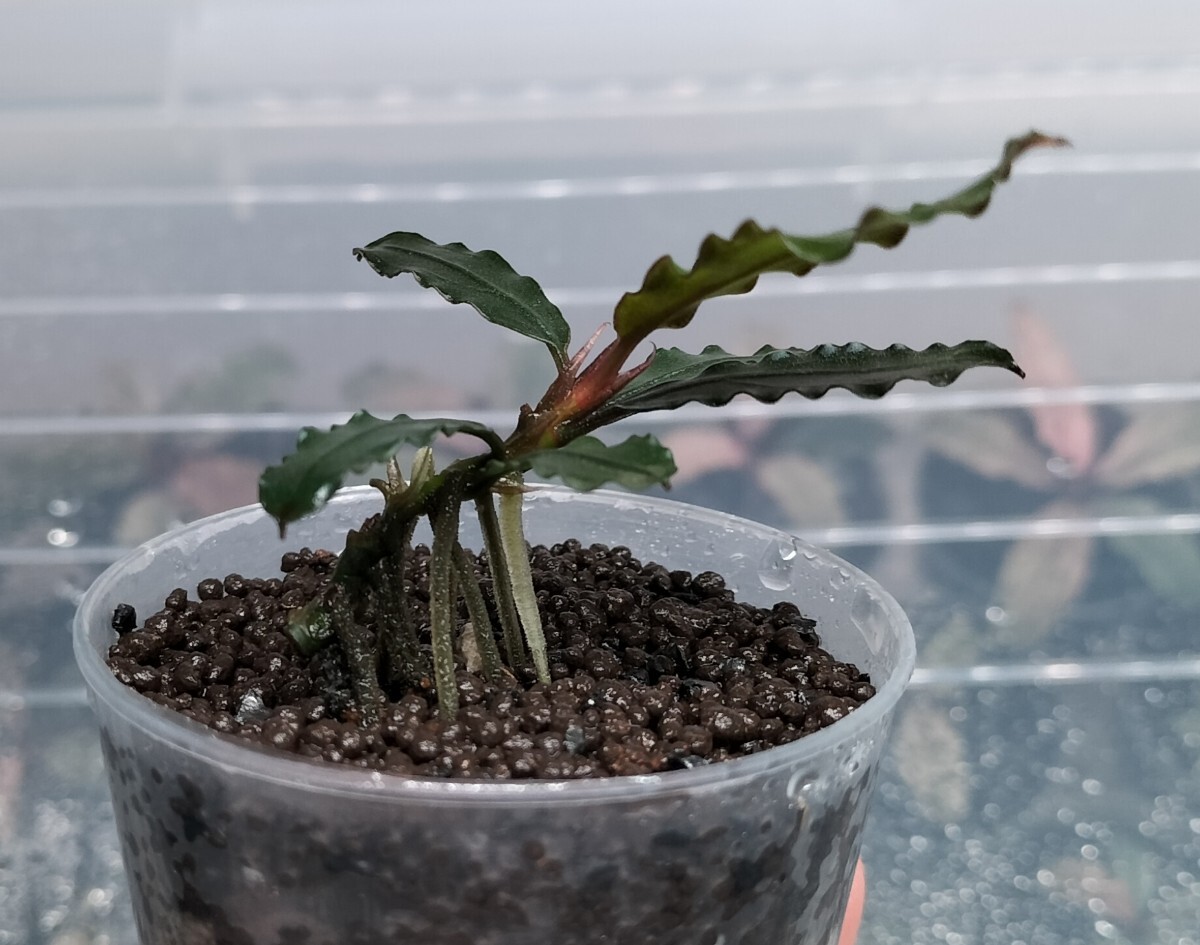 Bucephalandra sp. “Gn.Saran” Kayulapis Kalimantanbarat(2020,p107.WPR) 水上株 ブセファランドラ Bucephalandra 鉢ごとの出品です。