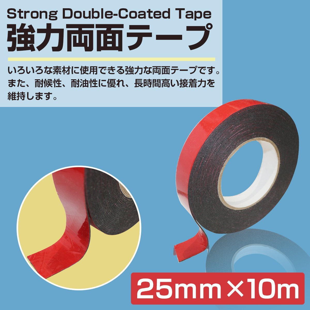 【送料無料】[幅2.5cm 長さ10m] 強力 両面テープ 厚さ1mm 屋外 屋内 車 バイク DIY エアロ ウイング スポイラー 外装 内装 黒 ブラック