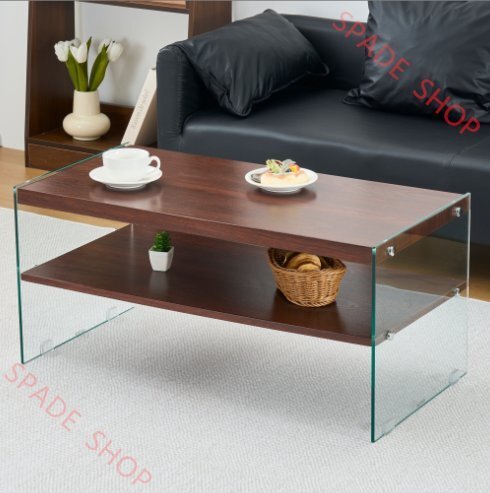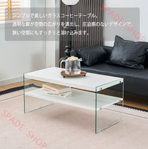【国内発送】リビングテーブル センターテーブル コーヒーテーブル ローテーブル 収納 モダン長方形MDF天板×強化ガラス脚