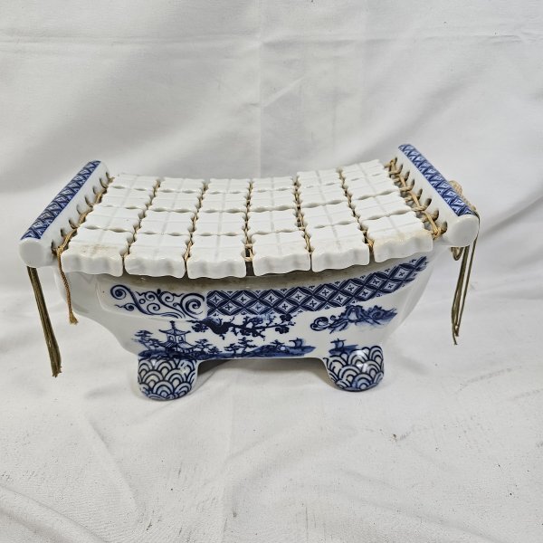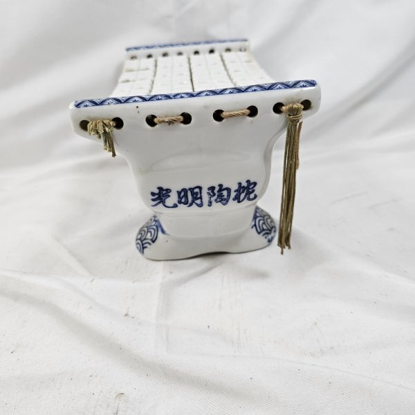 こちらは、伝統的な青白磁の装飾が美しい陶器製の枕、**「光明陶枕」**です。そのデザインは「老明陶壺」を思わせる、歴史と品格を感じさせる逸品です。
