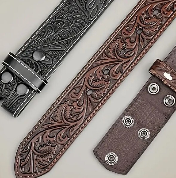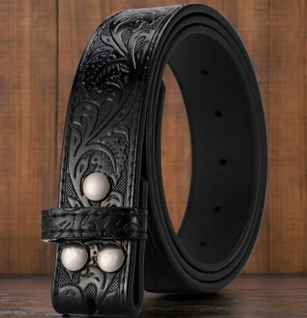 | ☆送料込み 本革型押しウエスタンベルト黒 120cm バックルなし ☆ | |