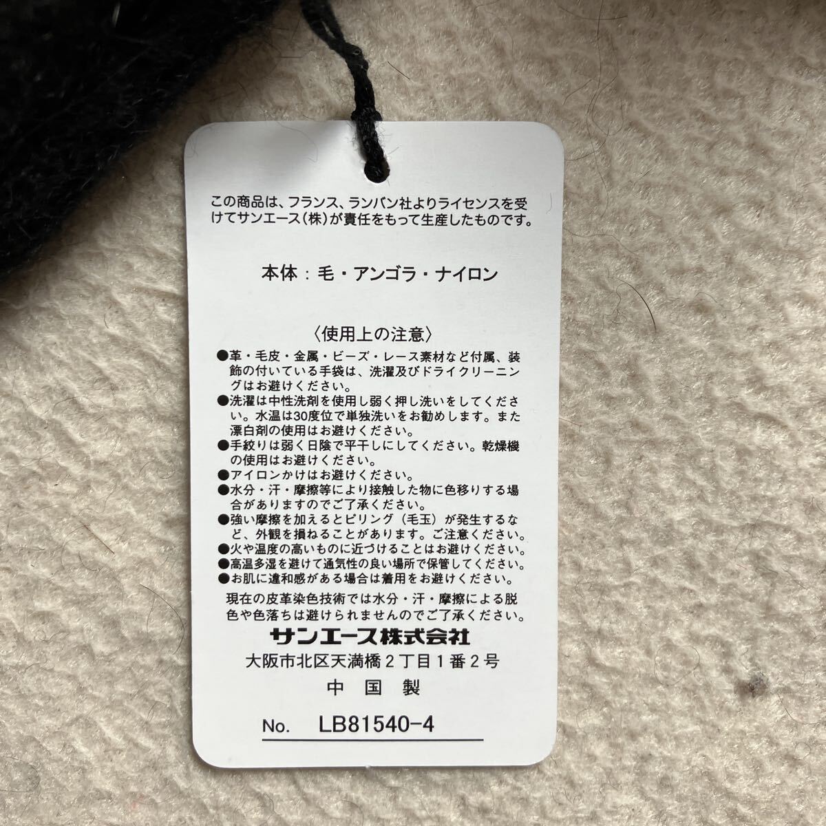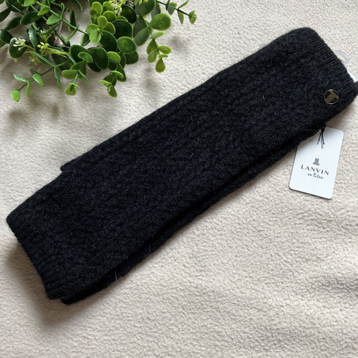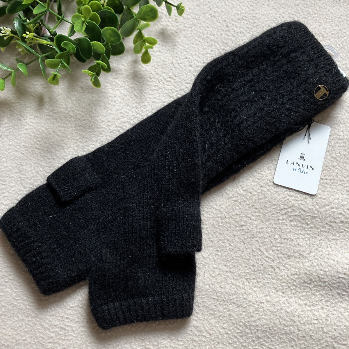 ★新品★ LANVIN en Bleu ランバン オンブルー 模様編 指先が出る ロングタイプ アンゴラ混 手袋 レディース ブラック系