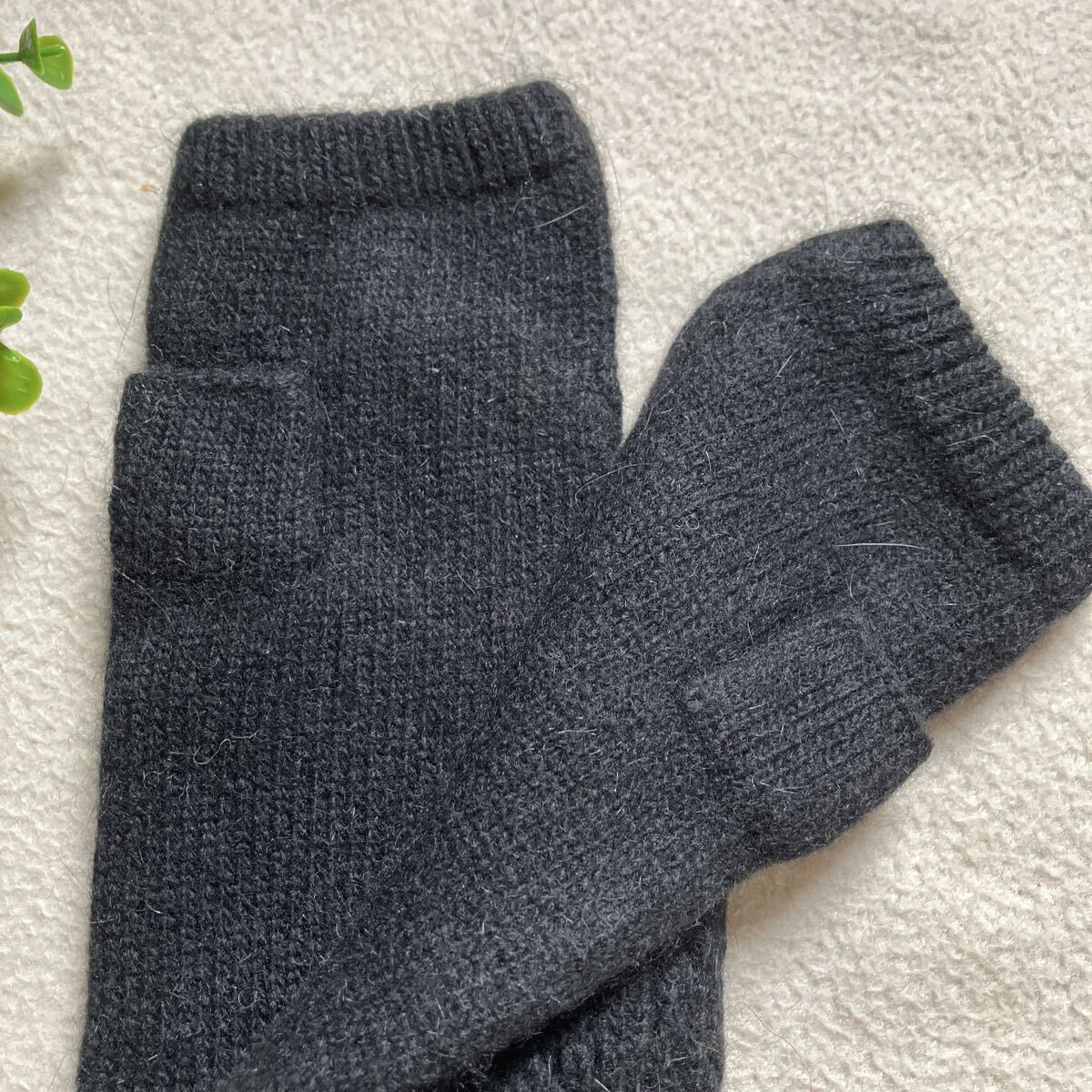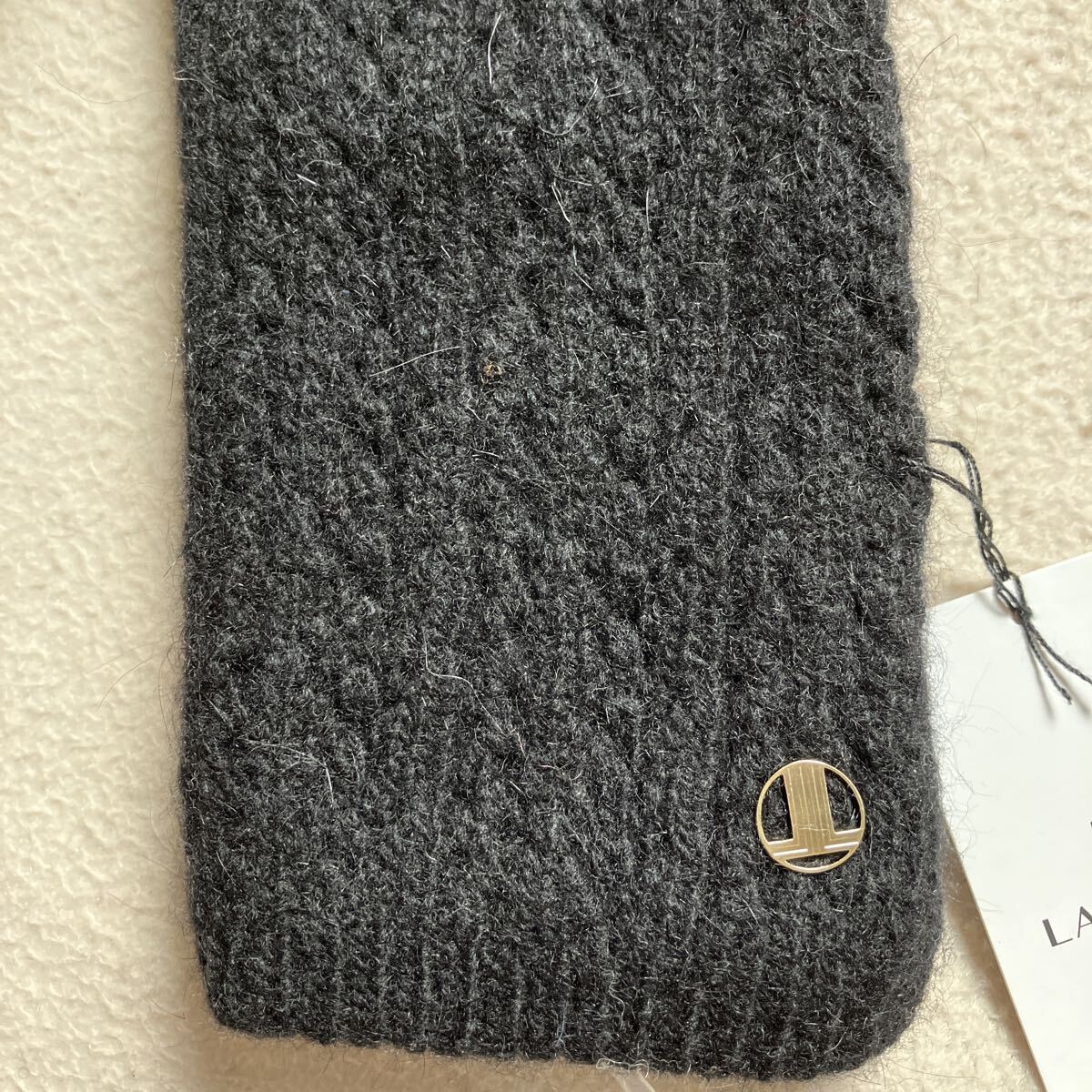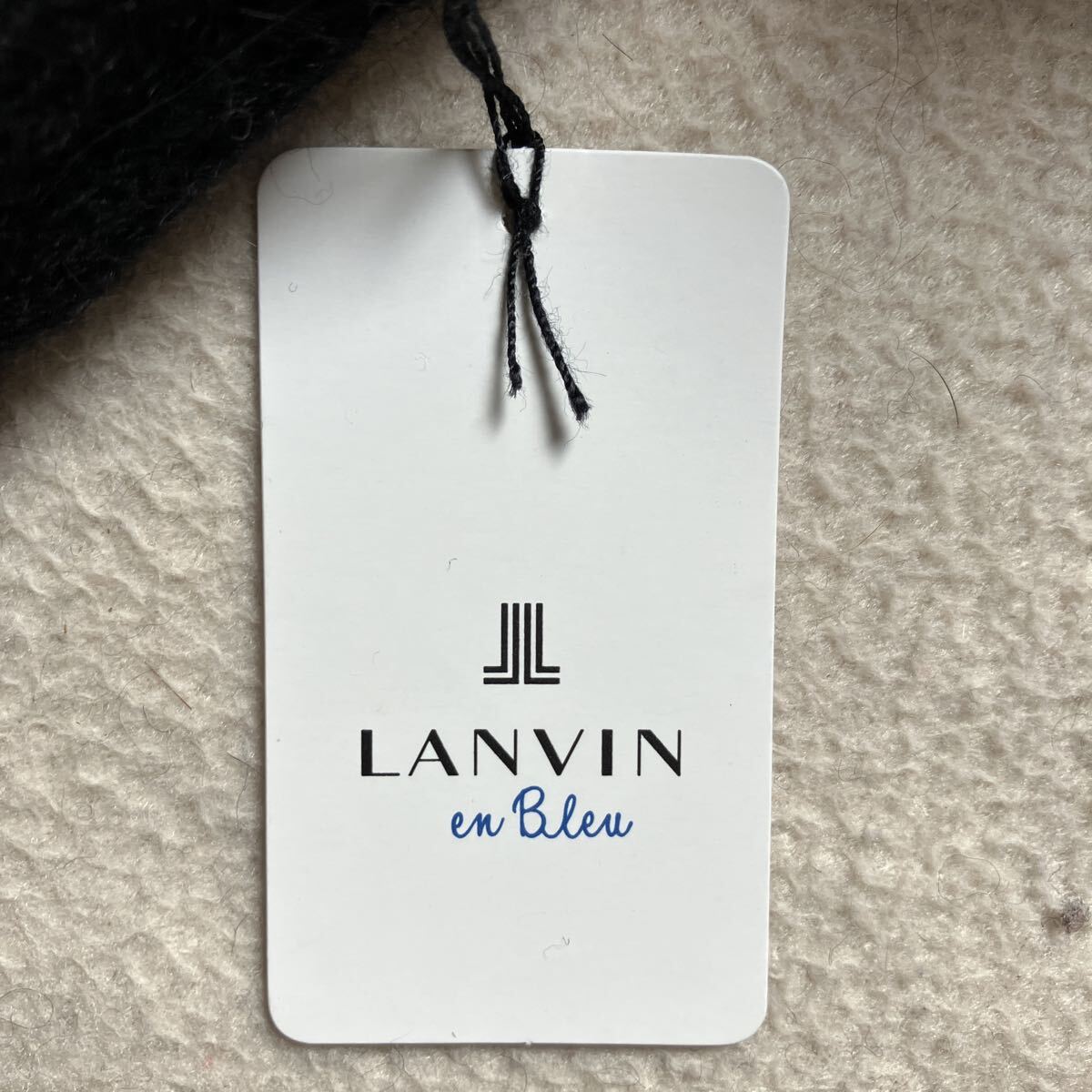 ★新品★ LANVIN en Bleu ランバン オンブルー 模様編 指先が出る ロングタイプ アンゴラ混 手袋 レディース ブラック系