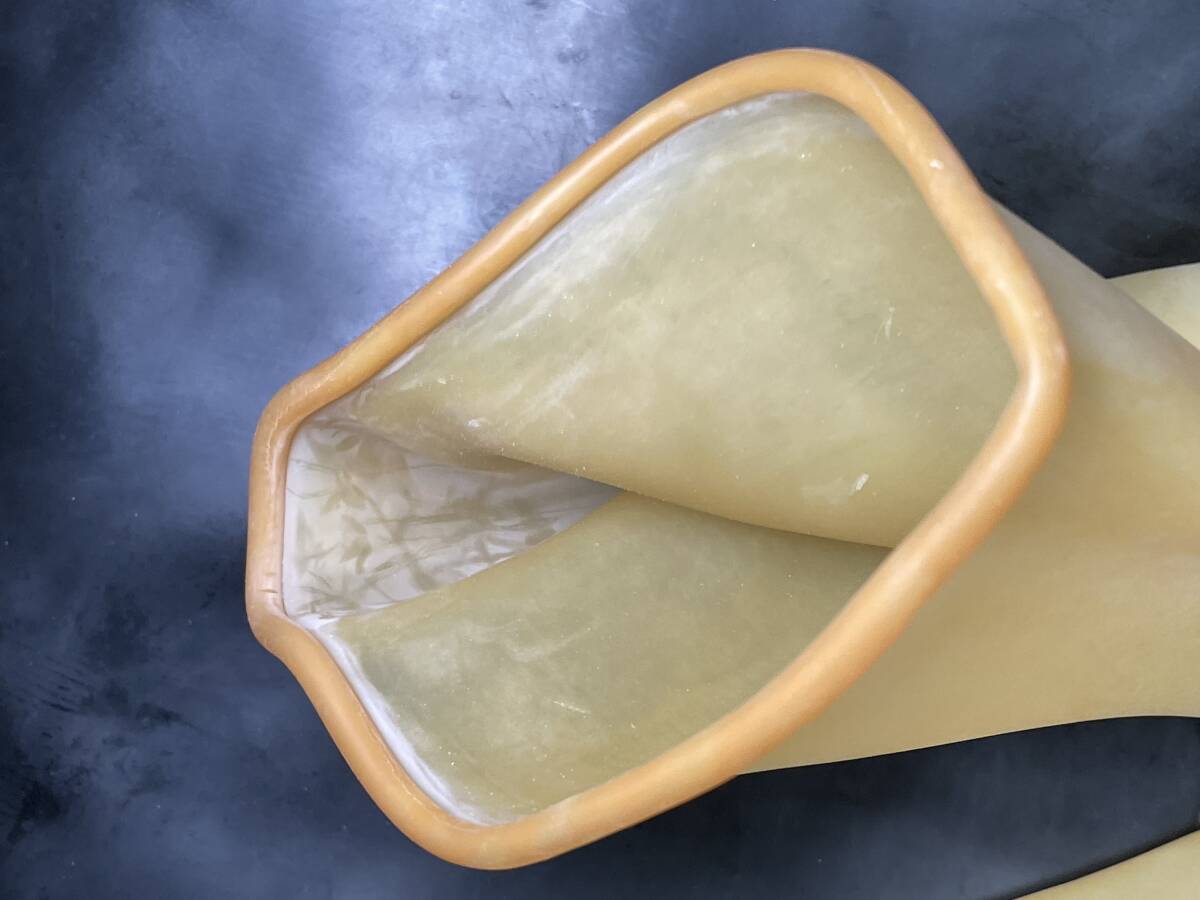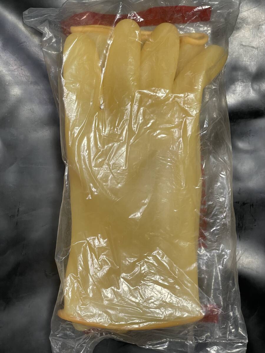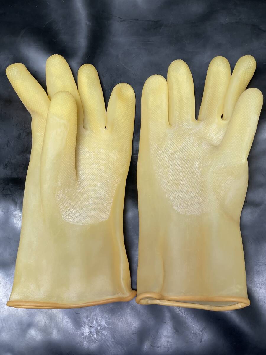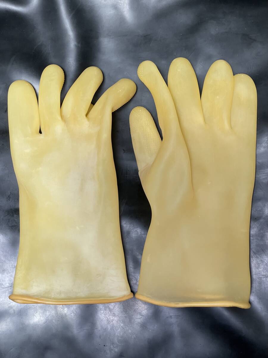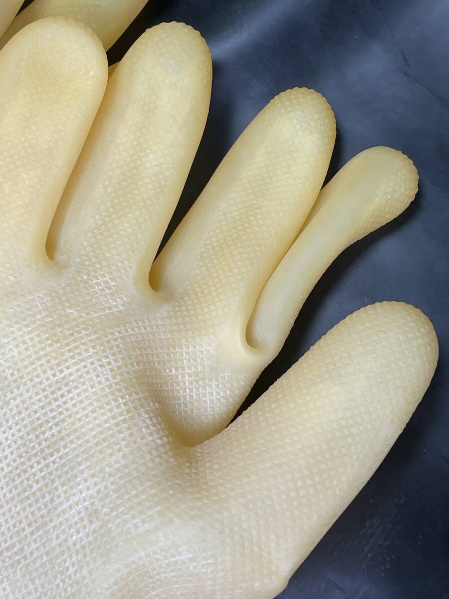 非常に珍しいきれいなアメ色の工業用手袋です。