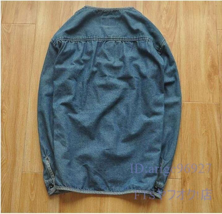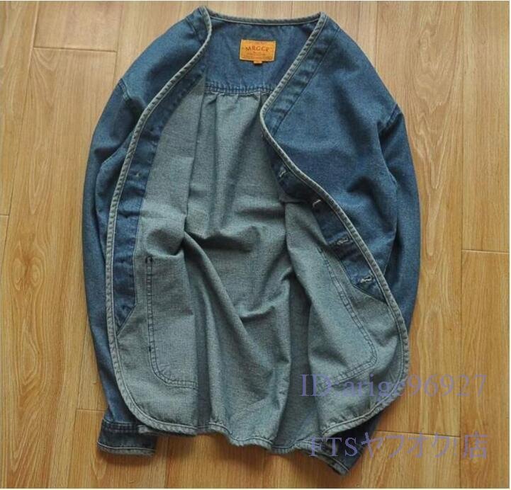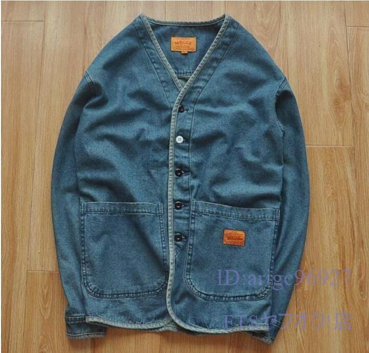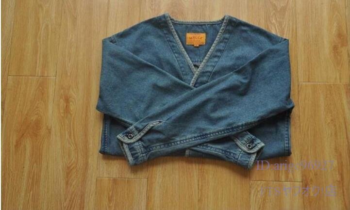 A1186☆新品秋 ヴィンテージ復刻アメカジ デニムカバーオール 綿 ワークジャケット インディゴ 作務衣 男前 XXLサイズ