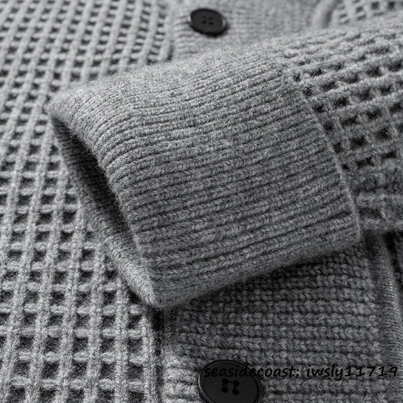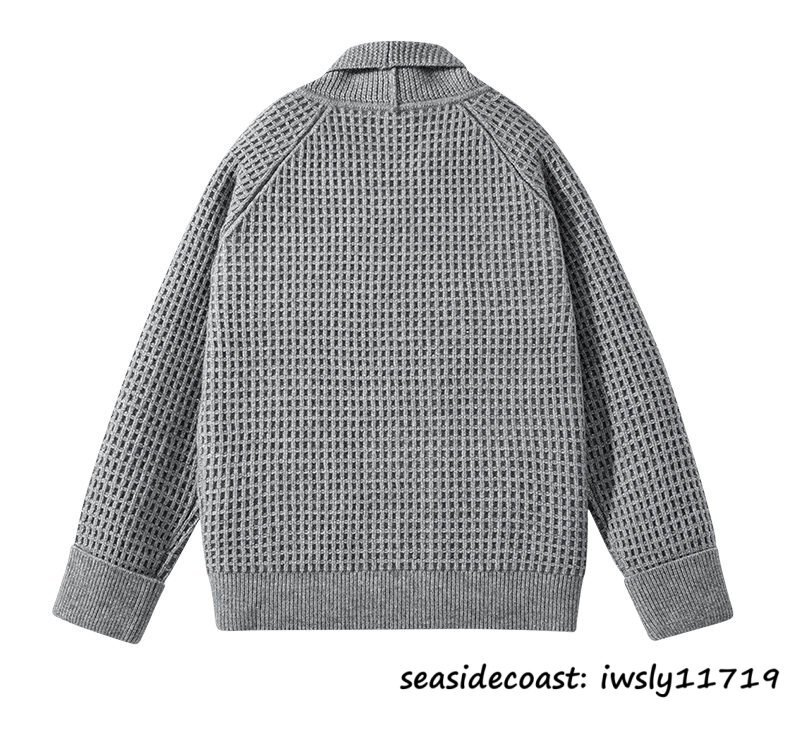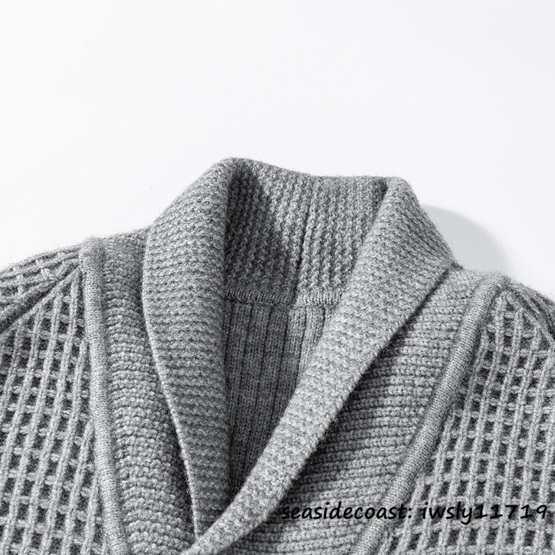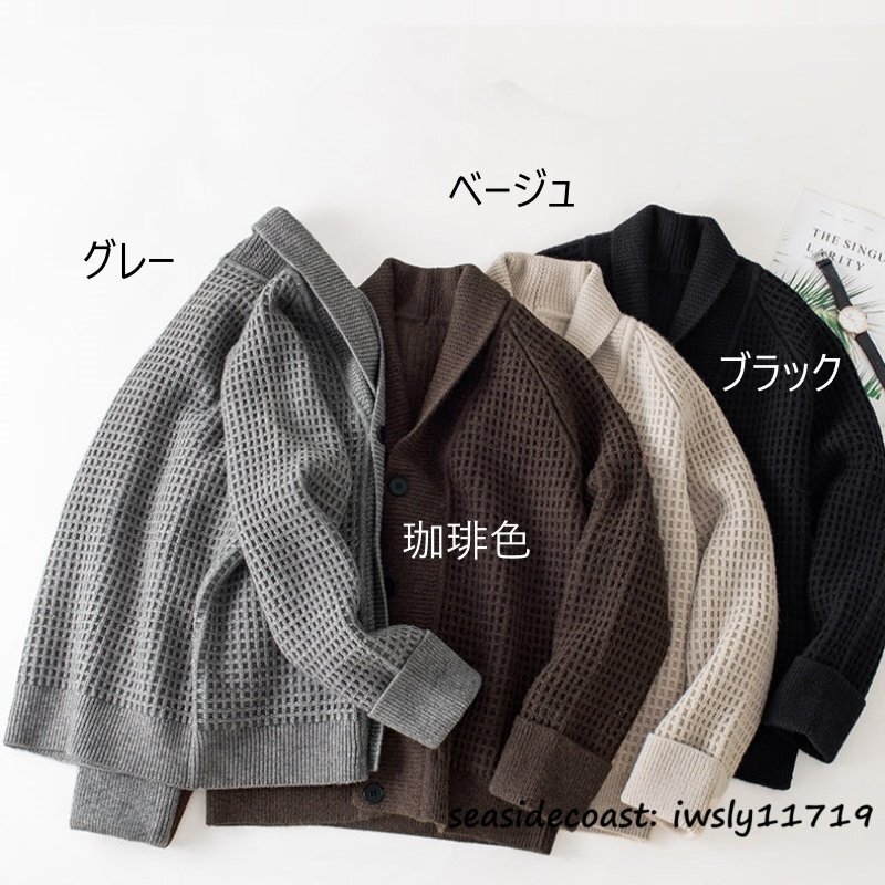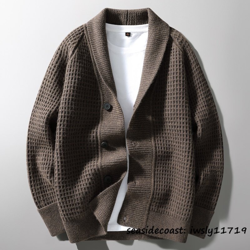 新品*カーディガン メンズ ニットセーター デザイナーズ 秋冬 厚手 防寒 保温 開襟 シャツカラー チェック柄 アウター 通勤 珈琲色 L