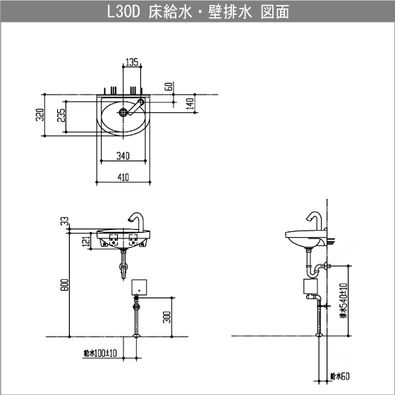・手洗器寸法 幅:410mm x 奥行:320mm x 高さ:154mm
