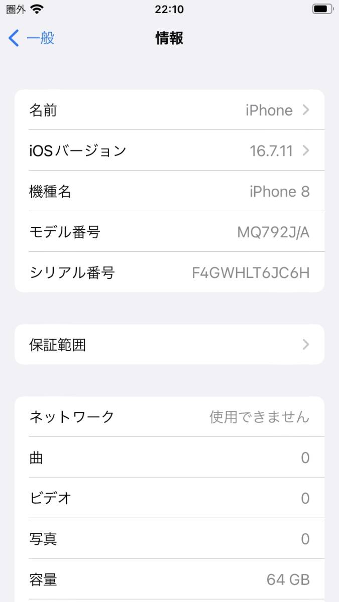 稼働品 SIMフリー iPhone8 64GB シルバー バッテリー 87% 動作品 04