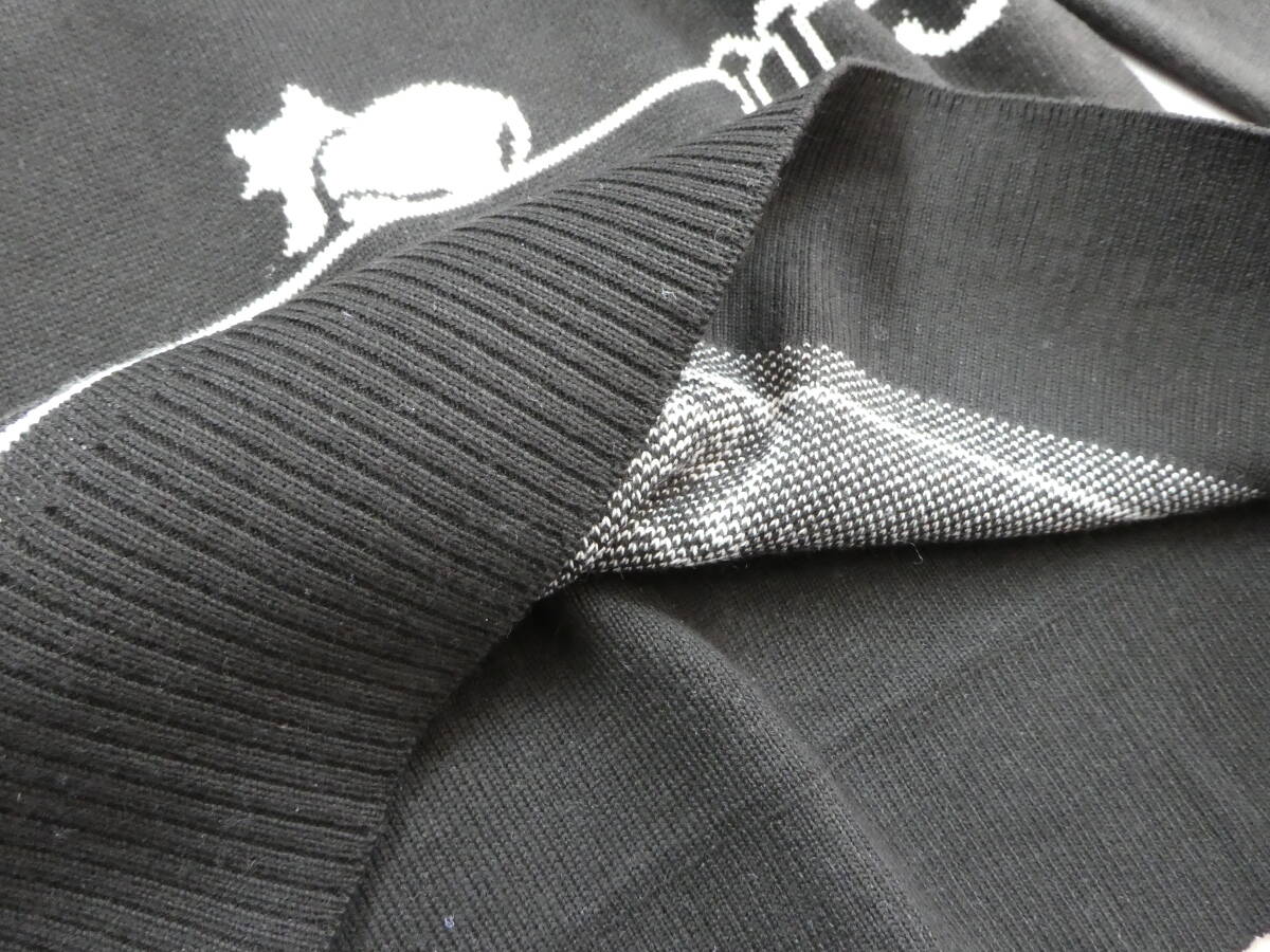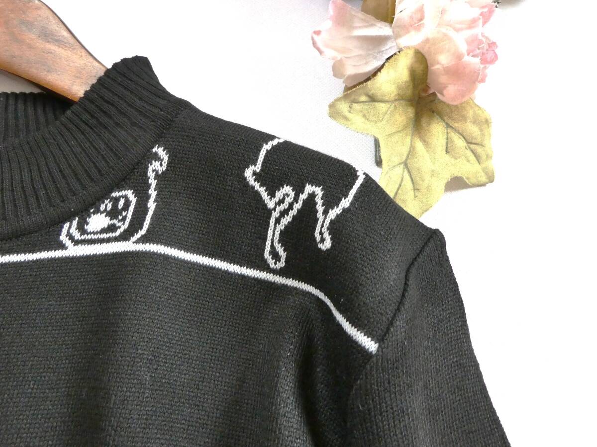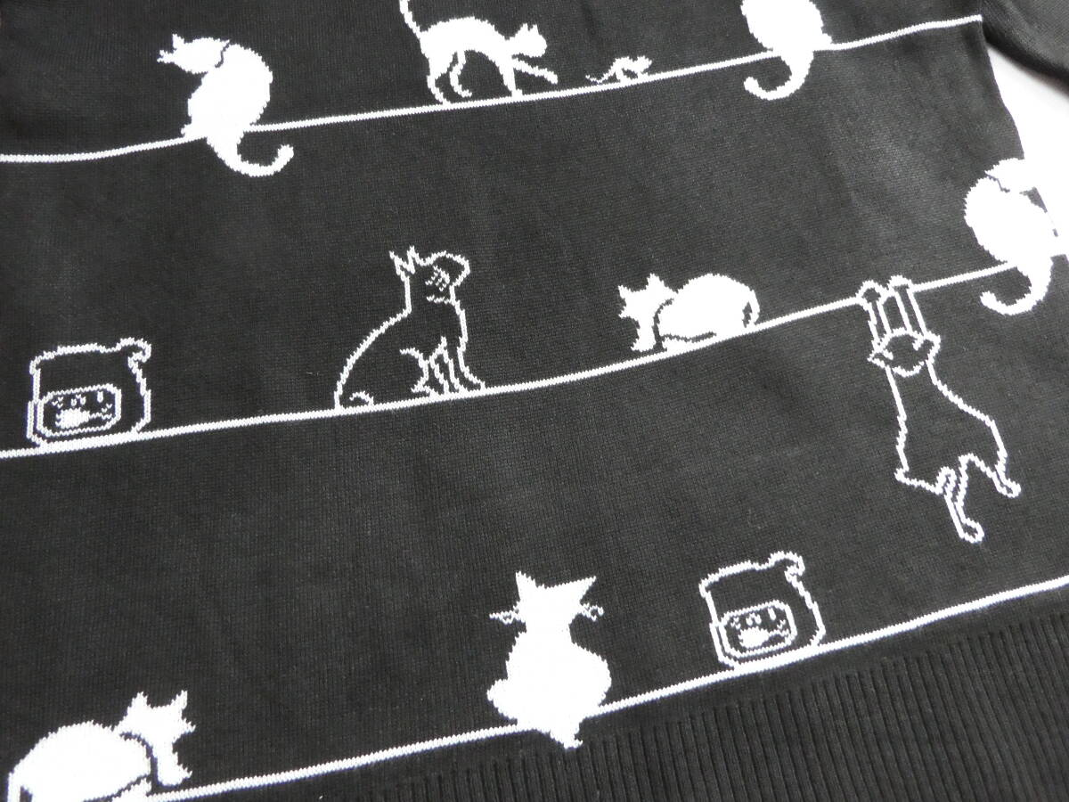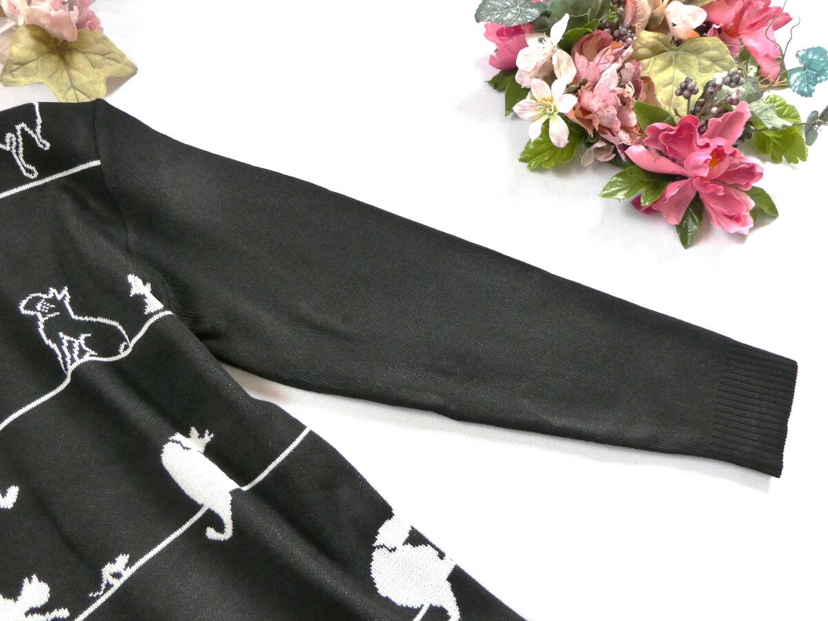 ゆったりサイズ【新品】ミドルゲージニット素材☆可愛いネコちゃんがいっぱい♪ハイネックチュニック★黒×白◆fit1027◆
