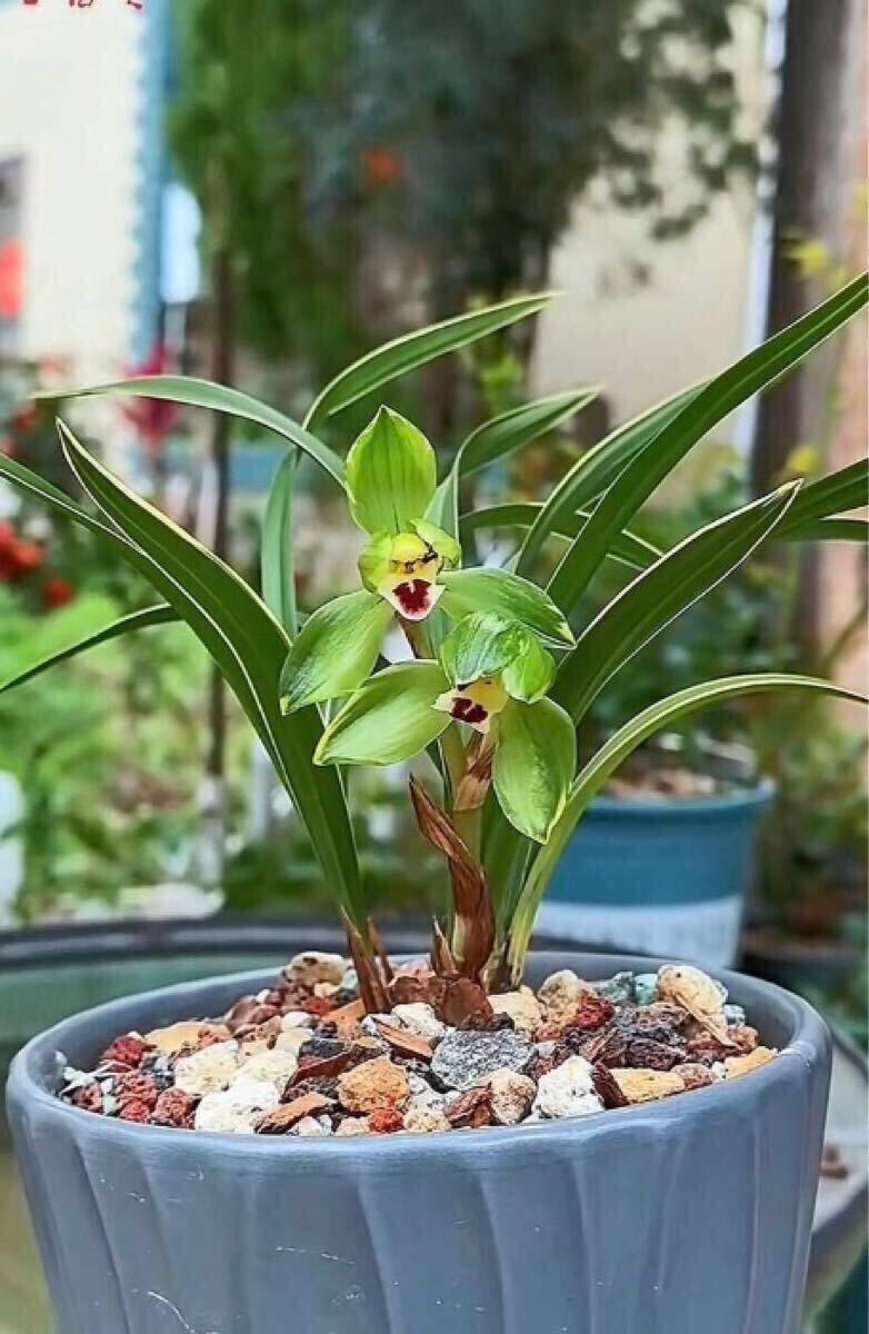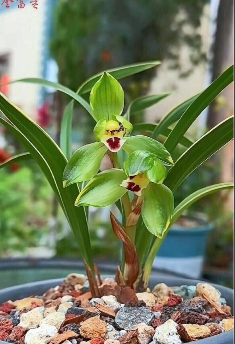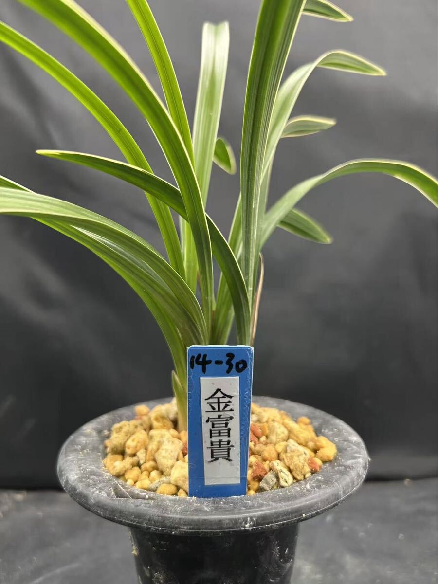 中国春蘭 葉花双芸 銘品「金富貴」上木 3本立 花芽付き 葉長約32cm 春蘭、寒蘭、万年青、日本春蘭