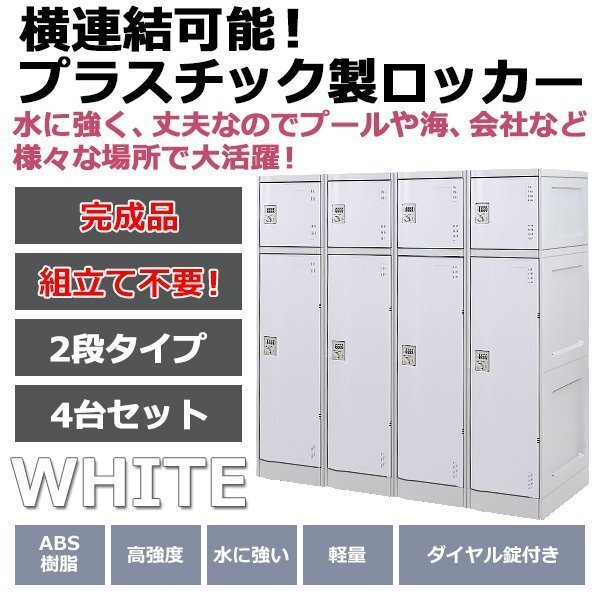 | 商品名 | 送料無料 プラスチックロッカー ロッカー 完成品 ハイグレードモデル 横連結可能 2段 4台 ホワイト おしゃれ 水に強い 丈夫 ダイヤル錠付き ABS樹脂製 樹脂ロッカー プラスチック製 宅配ボックス プール オフィス 家具 隙間家具 白 platakube2454 |