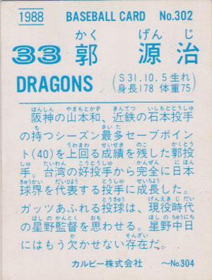 ★トレーディングカード★1988カルビープロ野球チップス【#302 郭源治】★