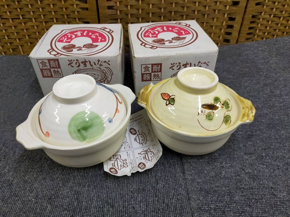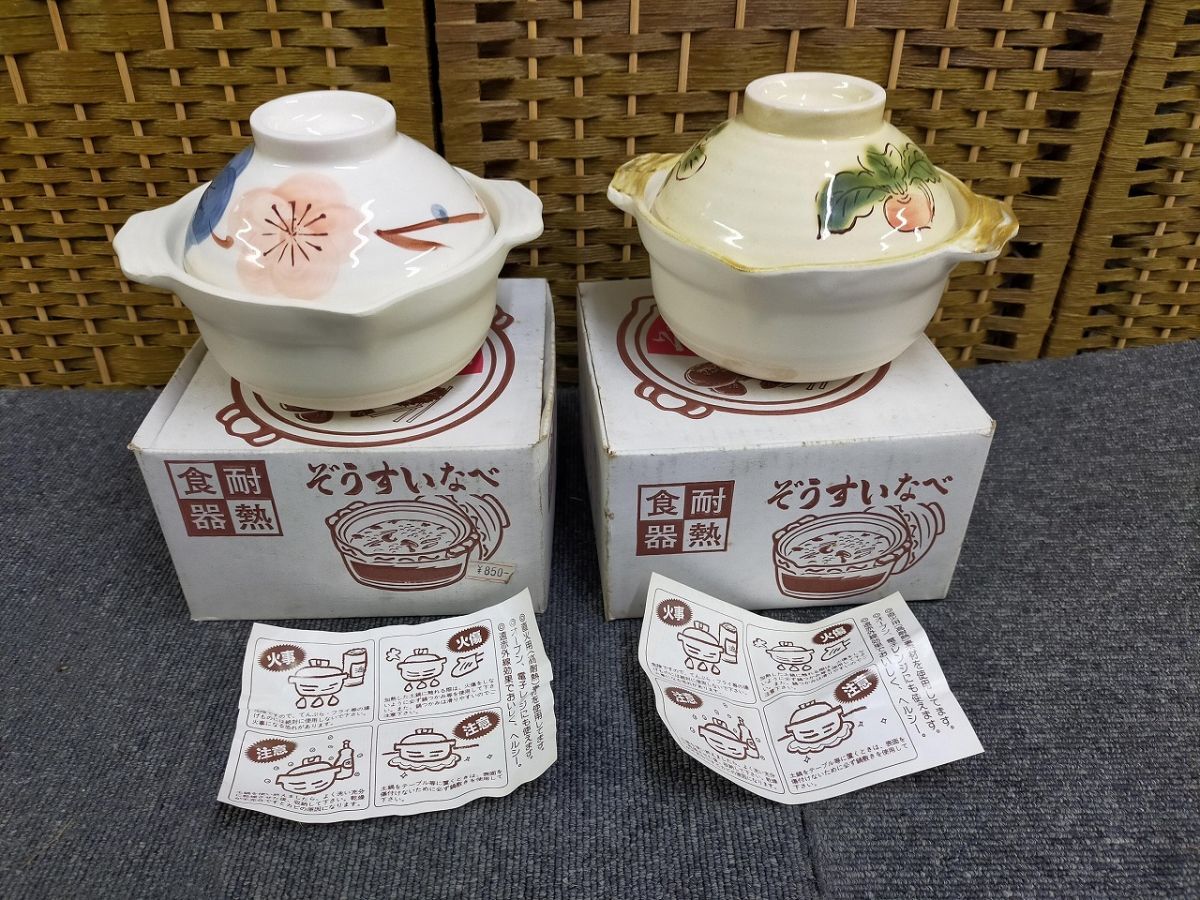 E19-20251115-09 富永陶園 ぞうすい鍋 2点セット 耐熱食器 直火OK 1人用 土鍋 未使用 まとめ売り