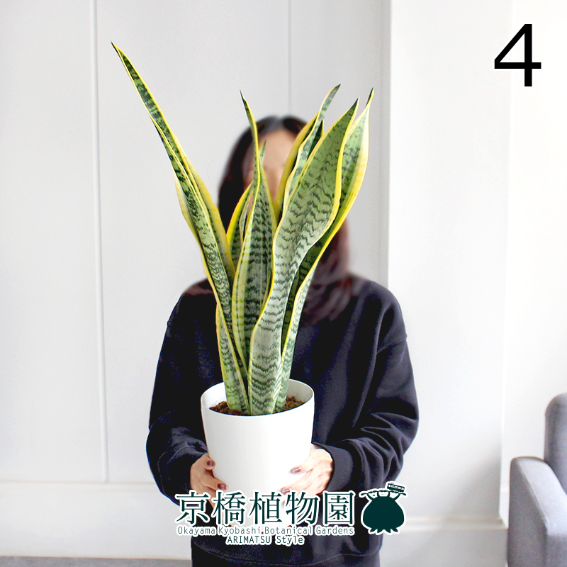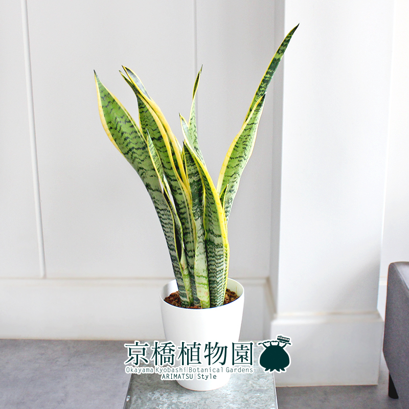 【現品】サンスベリア・ローレンチ 6号 白鉢(4)Sansevieria trifasciata ‘Laurentii’