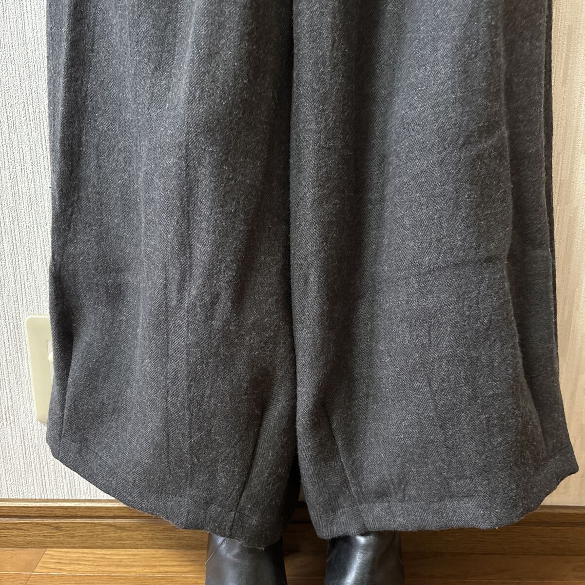 *ハンドメイド*ナチュラル♪ワイドパンツ 裾バルーン チャコールグレー コットンリネン ヘリンボーン