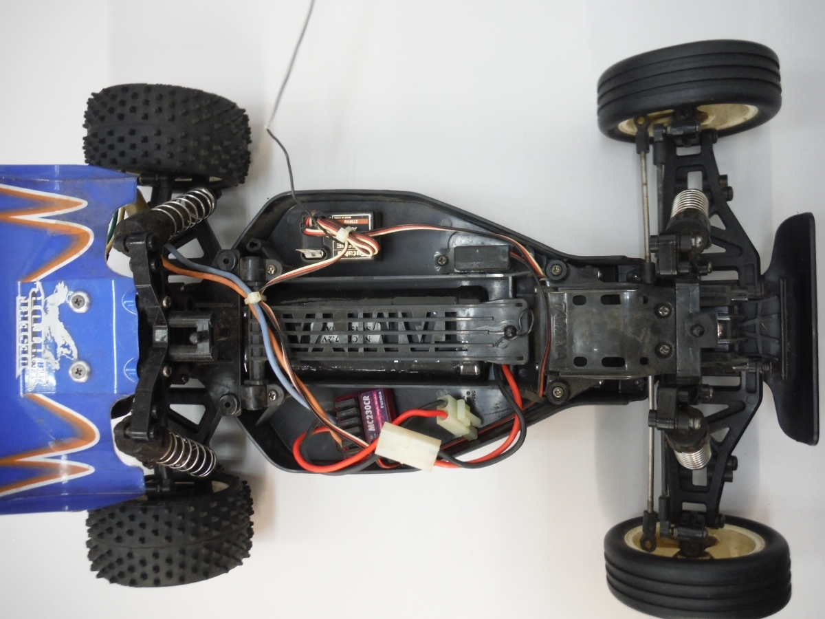 汚れはあります。送信機の電池を入れシャーシ側、安定化電源を繋いでプロポの操作でステアリング、モーター共に動作する事