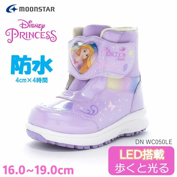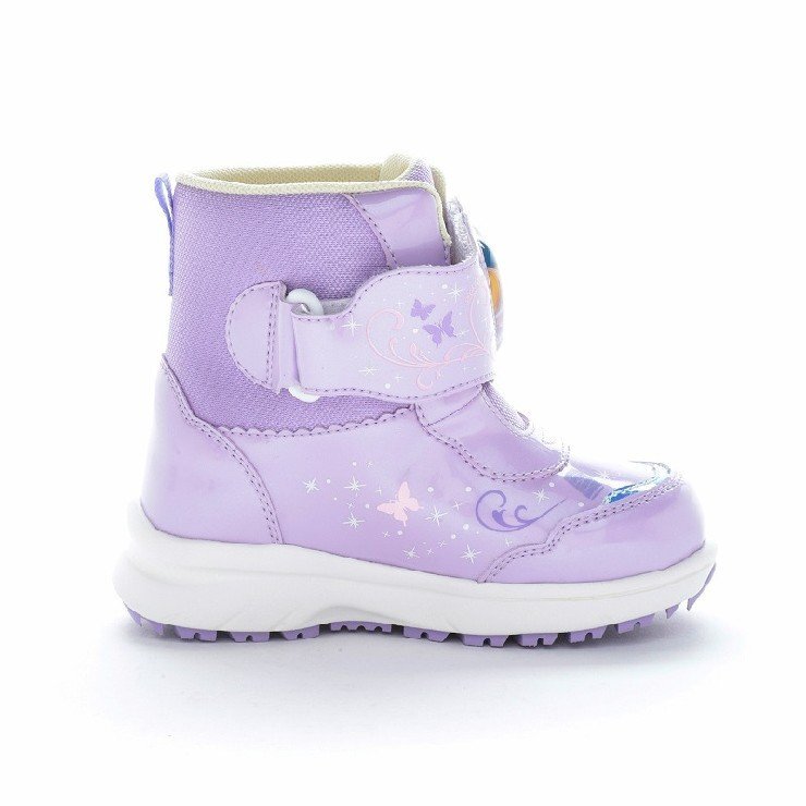| ディズニープリンセスのLEDキッズ用ウインターブーツです。 ワンタッチで脱ぎ履きできる一本バンドタイプです。 甲バンドのハート部分にキャラクターを載せ、キラキラ素材を使用した華やかなデザインの商品です。 パープルはラプンツェルデザインです。 甲バンドに搭載したLEDが振動で光るので夜間での安全性を高めます。 甲バンドは取り外し可能で、靴のみを洗う事ができます。発光回数の目安は約30万回、およそ2か月光ります。 雨雪時にもおすすめな「防水設計(4cm 4時間防水)」機能を搭載し、靴底はグリップ性を考慮した底意匠設計です。 重さは16.0cmで片足約230gです。 中敷きには「Ag+抗菌防臭」を搭載しています。 【Ag+抗菌防臭】銀イオンの抗菌作用でにおいのもととなる菌の増殖を抑制し、防臭効果を発揮します。 【洗えるインソール】足裏になじみ、取り出して洗濯ができるので靴内を清潔に保てる中敷きです。 【防水設計(4cm 4時間防水)】地面から4cm、4時間の浸漬状態での防水性を備えた防水機能です。 ※完全防水ではございません。 | |