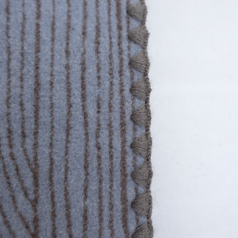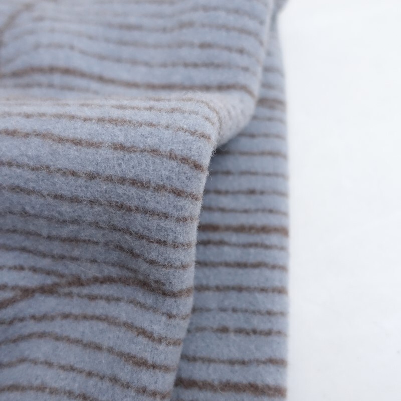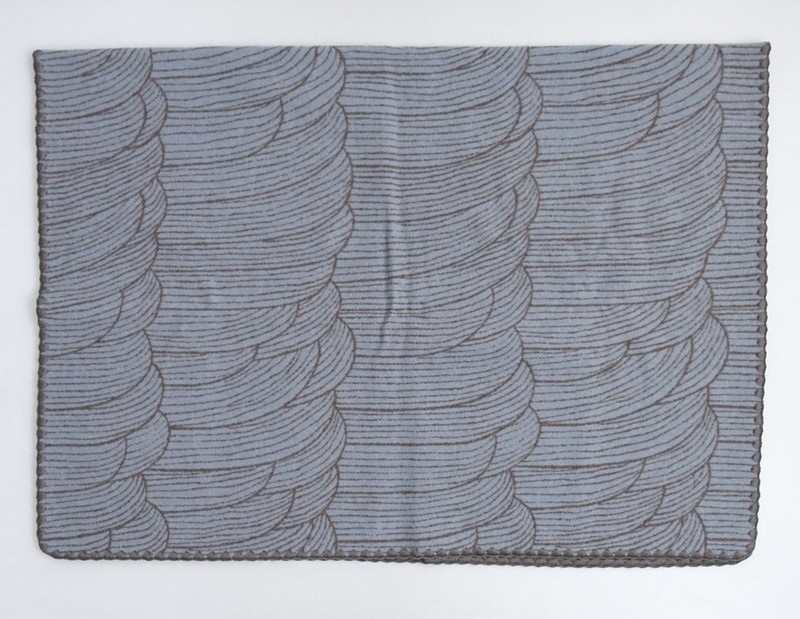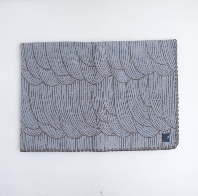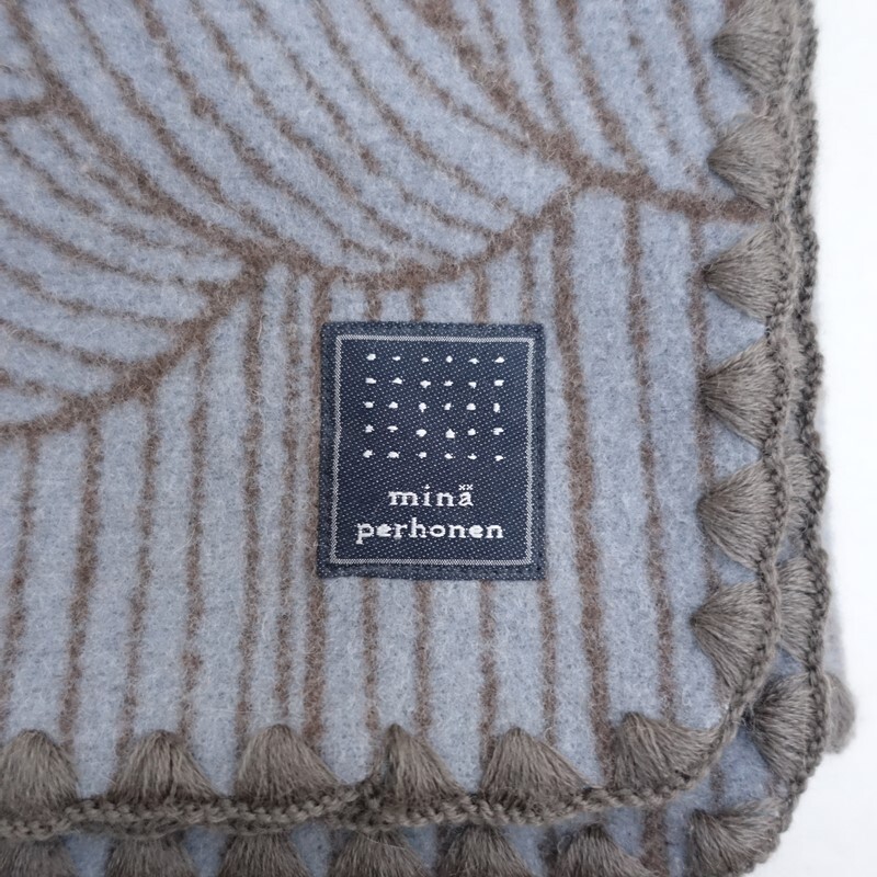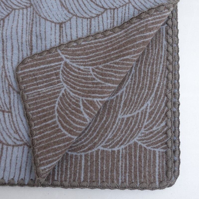 | mina perhonenのsulka ブランケット Sです。カラーはグレー×ブラウンの総柄テキスタイルで、裏表で色が反転しており、縁周りにステッチが施されています。 |