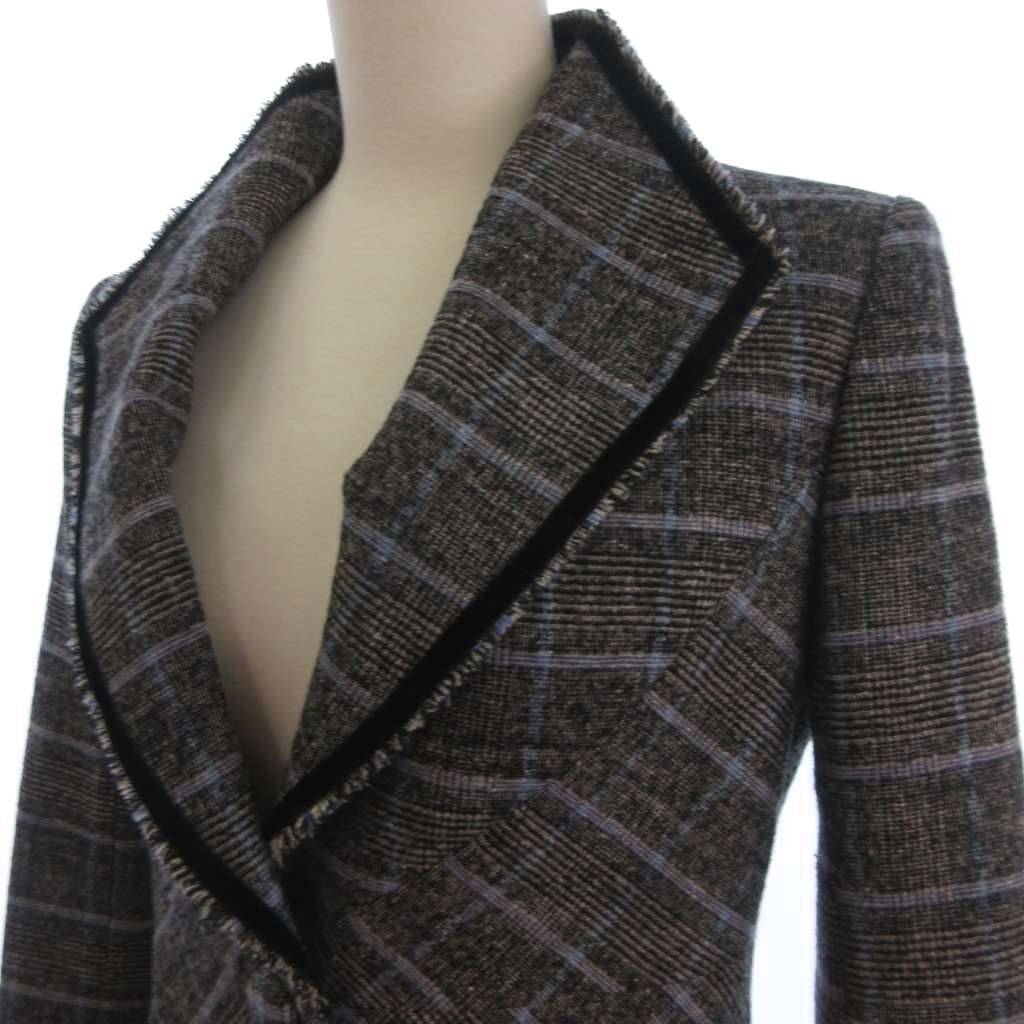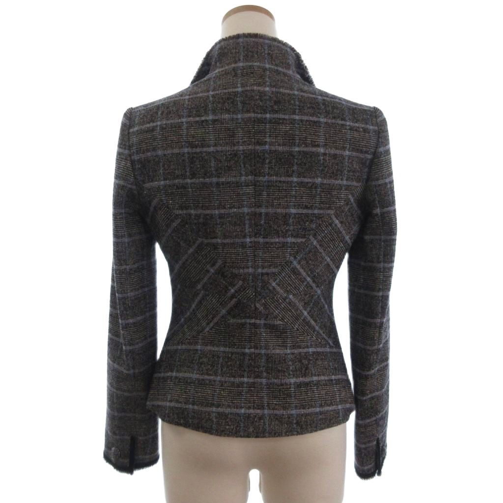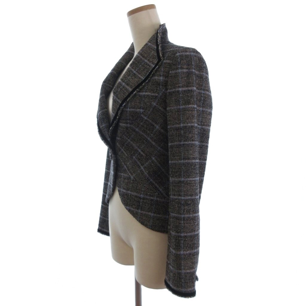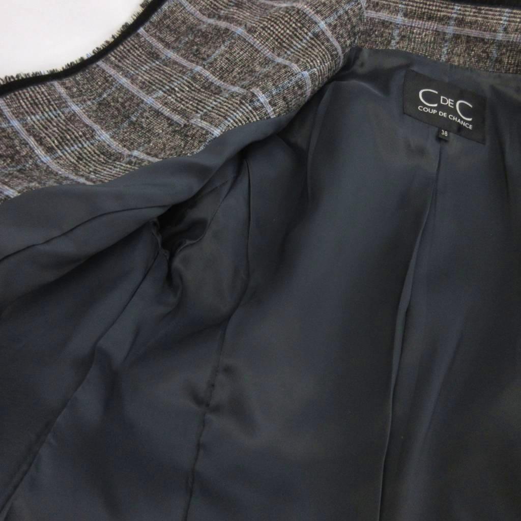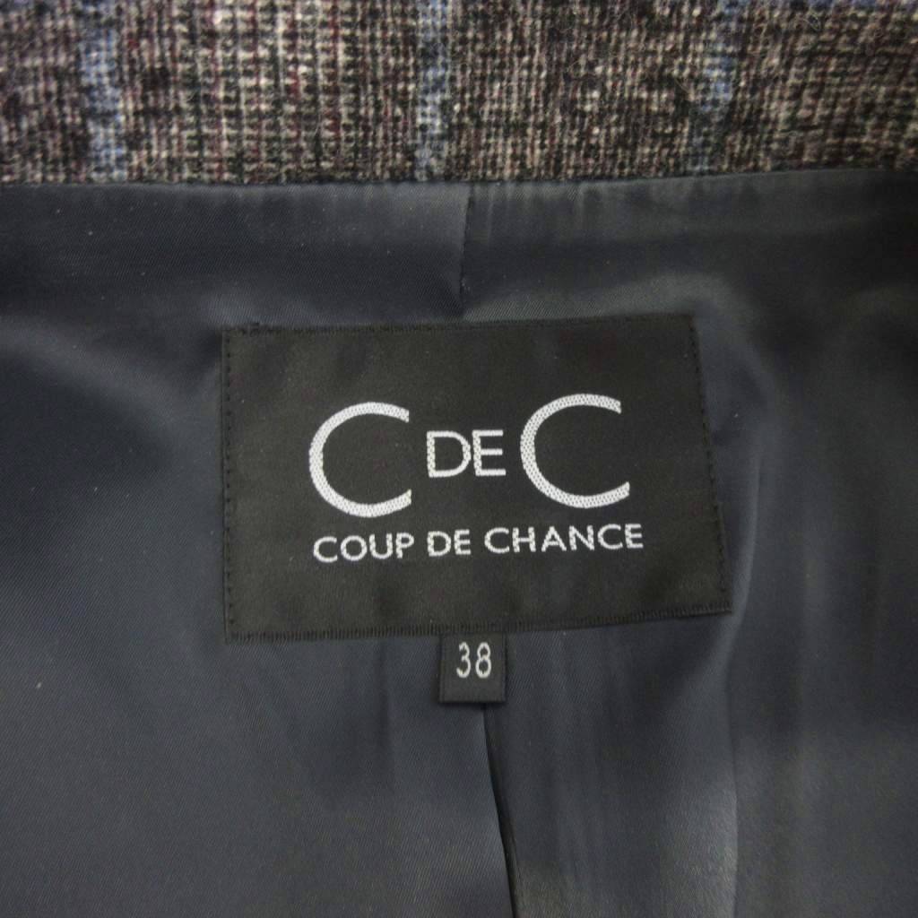 クードシャンス CdeC COUP DE CHANCE ツイード ジャケット フリンジ ウール チェック グレー系 38 レディース